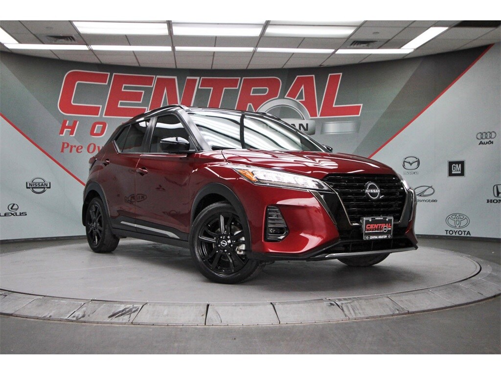 Central Houston Nissan is proud to present you with another True Market Priced Pre-Owned Vehicle. This 2023 Nissan Kicks SR Nissan Certified is loaded with the following Factory Options: Nissan Certified Certified SR Premium Package (Bose Personal Plus Audio System, Heated Front Seats, Heated Steering Wheel, Prima-Tex Appointed Seat Trim, Security System, and Tonneau Cover), Technology Package (NissanConnect Services), Nissan Certified Certified, 17" Alloy Wheels, 3.93 Axle Ratio, 4-Wheel Disc Brakes, 6 Speakers, ABS brakes, Air Conditioning, Alloy wheels, AM/FM radio: SiriusXM, Apple CarPlay/Android Auto, Auto High-beam Headlights, Automatic temperature control, Blind Spot Warning, Brake assist, Bumpers: body-color, Carpeted Floor Mats w/Cargo Mat, Cloth Seat Trim, Delay-off headlights, Driver door bin, Driver vanity mirror, Dual front impact airbags, Dual front side impact airbags, Electronic Stability Control, Exterior Parking Camera Rear, Front anti-roll bar, Front Bucket Seats, Front Center Armrest, Front fog lights, Front reading lights, Front wheel independent suspension, Fully automatic headlights, Heated door mirrors, Illuminated entry, Knee airbag, Low tire pressure warning, Occupant sensing airbag, Outside temperature display, Overhead airbag, Panic alarm, Passenger door bin, Passenger vanity mirror, Power door mirrors, Power steering, Power windows, Radio data system, Radio: AM/FM Audio System, Rear Parking Sensors, Rear reading lights, Rear Roof Spoiler Credit, Rear side impact airbag, Rear window defroster, Rear window wiper, Remote keyless entry, Speed control, Splash Guards Grain (4 Piece), Split folding rear seat, Sport steering wheel, Steering wheel mounted audio controls, Tachometer, Telescoping steering wheel, Tilt steering wheel, Traction control, Trip computer, Turn signal indicator mirrors, Variably intermittent wipers, and Wheels: 17" Black Alloy!!