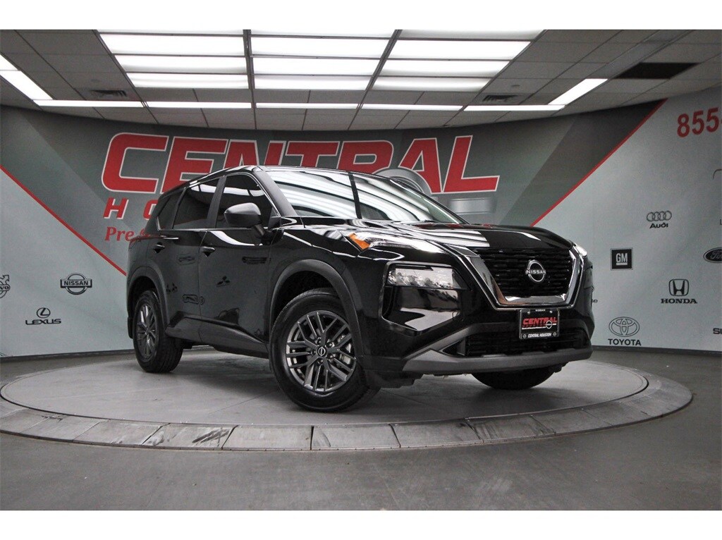 Central Houston Nissan is proud to present you with another True Market Priced Pre-Owned Vehicle. This 2023 Nissan Rogue S Nissan Certified is loaded with the following Factory Options: Nissan Certified Certified Nissan Certified Certified, 17" Aluminum Alloy Wheels, 4 Speakers, 4-Wheel Disc Brakes, 5.604 Axle Ratio, ABS brakes, Air Conditioning, Alloy wheels, AM/FM Radio, AM/FM radio: SiriusXM, Auto High-beam Headlights, Black Splash Guards (Set of 4), Blind Spot Warning, Brake assist, Bumpers: body-color, Cloth Seat Trim, Delay-off headlights, Driver door bin, Driver vanity mirror, Dual front impact airbags, Dual front side impact airbags, Electronic Stability Control, First Aid Kit, Floor Mats w/1-Piece Cargo Area Protector, Four wheel independent suspension, Front anti-roll bar, Front Bucket Seats, Front Center Armrest, Front reading lights, Fully automatic headlights, Illuminated entry, Knee airbag, Low tire pressure warning, NissanConnect featuring Apple CarPlay and Android Auto, Occupant sensing airbag, Outside temperature display, Overhead airbag, Overhead console, Panic alarm, Passenger door bin, Passenger vanity mirror, Power door mirrors, Power steering, Power windows, Radio data system, Rear anti-roll bar, Rear Parking Sensors, Rear seat center armrest, Rear side impact airbag, Rear window defroster, Rear window wiper, Remote keyless entry, Speed control, Speed-Sensitive Wipers, Split folding rear seat, Spoiler, Steering wheel mounted audio controls, Tachometer, Telescoping steering wheel, Tilt steering wheel, Traction control, Trip computer, USB Charging Cable Set - Nissan, and Variably intermittent wipers!!