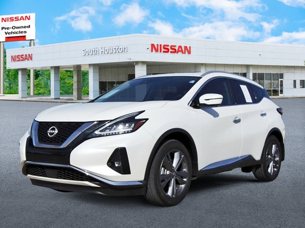 South Houston Nissan is proud to present you with another True Market Priced Pre-Owned Vehicle. This 2024 Nissan Murano Platinum is loaded with the following Factory Options: CVT with Xtronic Cargo Package (Cargo Area Protector, Cargo Net, First Aid Kit, and Retractable Cargo Cover), CVT with Xtronic, 11 Speakers, 4-Wheel Disc Brakes, 4.667 Axle Ratio, ABS brakes, Air Conditioning, Alloy wheels, AM/FM radio: SiriusXM, AM/FM/CD/MP3/WMA Audio System, Auto High-beam Headlights, Auto tilt-away steering wheel, Auto-dimming Rear-View mirror, Automatic temperature control, Blind Spot Warning, Brake assist, Bumpers: body-color, Carpeted Floor Mats & Carpeted Cargo Mat, CD player, Child-Seat-Sensing Airbag, Compass, Delay-off headlights, Driver door bin, Driver vanity mirror, Dual front impact airbags, Dual front side impact airbags, Electronic Stability Control, Emergency communication system: NissanConnect Services (first 6 months included), Exterior Parking Camera Rear, Four wheel independent suspension, Front anti-roll bar, Front Bucket Seats, Front Center Armrest, Front dual zone A/C, Front fog lights, Front reading lights, Fully automatic headlights, Garage door transmitter: HomeLink, Heated & Ventilated Front Bucket Seats, Heated door mirrors, Heated front seats, Heated rear seats, Heated steering wheel, Illuminated entry, Illuminated Kick Plates, Illuminated Kick Plates (PIO), Knee airbag, Leather steering wheel, Low tire pressure warning, Memory seat, Navigation system: NissanConnect with Navigation and Services, Nissan USB Charging Cable Set, NissanConnect featuring Apple CarPlay and Android Auto, NissanConnect Services Powered By SiriusXM, Occupant sensing airbag, Outside temperature display, Overhead airbag, Overhead console, Panic alarm, Passenger door bin, Passenger vanity mirror, Power door mirrors, Power driver seat, Power Liftgate, Power moonroof, Power passenger seat, Power steering, Power windows, Radio data system, Rear anti-roll bar, Rear Bumper Protector, Rear reading lights, Rear seat center armrest, Rear side impact airbag, Rear window defroster, Rear window wiper, Remote keyless entry, Security system, Semi-Aniline Leather-Appointed Seat Trim, Speed control, Speed-sensing steering, Speed-Sensitive Wipers, Splash Guards (B92), Split folding rear seat, Spoiler, Steering wheel memory, Steering wheel mounted audio controls, Tachometer, Telescoping steering wheel, Tilt steering wheel, Traction control, Trip computer, Turn signal indicator mirrors, Variably intermittent wipers, Ventilated front seats, and Wheels: 20" Unique Dark Hyper Silver!!