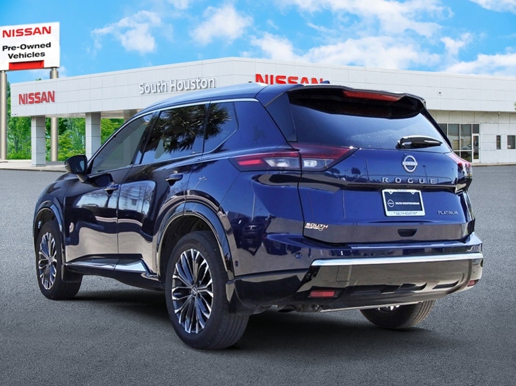 South Houston Nissan is proud to present you with another True Market Priced Pre-Owned Vehicle. This 2024 Nissan Rogue Platinum is loaded with the following Factory Options: 10 Speakers, 4-Wheel Disc Brakes, 5.676 Axle Ratio, ABS brakes, Air Conditioning, Alloy wheels, AM/FM radio: SiriusXM w/360L, Auto High-beam Headlights, Auto-dimming Rear-View mirror, Automatic temperature control, Bose Premium Audio System, Brake assist, Bumpers: body-color, Chrome Rear Bumper Protector, Delay-off headlights, Driver door bin, Driver vanity mirror, Dual front impact airbags, Dual front side impact airbags, Electronic Stability Control, Emergency communication system: NissanConnect Services, First Aid Kit, Floor Mats w/2-Piece Cargo Area Protector, Four wheel independent suspension, Front anti-roll bar, Front Bucket Seats, Front Center Armrest, Front dual zone A/C, Front reading lights, Fully automatic headlights, Heated door mirrors, Heated Front Bucket Seats, Heated front seats, Heated steering wheel, Illuminated entry, Knee airbag, Leather steering wheel, Low tire pressure warning, Memory seat, Navigation system: NissanConnect with Navigation and Services, NissanConnect featuring Apple CarPlay and Android Auto, Occupant sensing airbag, Outside temperature display, Overhead airbag, Overhead console, Panic alarm, Passenger door bin, Passenger vanity mirror, Power door mirrors, Power driver seat, Power Liftgate, Power moonroof, Power passenger seat, Power steering, Power windows, Quilted Semi-Aniline Leather-Appointed Seat Trim, Radio data system, Radio: AM/FM NissanConnect w/Navigation, Rear anti-roll bar, Rear reading lights, Rear seat center armrest, Rear side impact airbag, Rear window defroster, Rear window wiper, Remote keyless entry, Security system, Speed control, Speed-Sensitive Wipers, Splash Guards (Black - Set of 4), Split folding rear seat, Spoiler, Steering wheel mounted audio controls, Tachometer, Telescoping steering wheel, Tilt steering wheel, Traction control, Trip computer, Turn signal indicator mirrors, Variably intermittent wipers, and Wheels: 19" Unique Dark Painted Aluminum Alloy!!