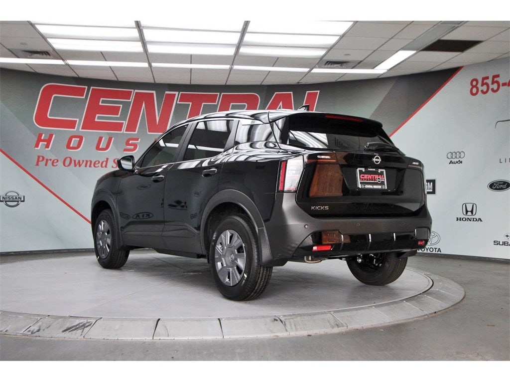 Central Houston Nissan is proud to present you with another True Market Priced Vehicle. This 2026 Nissan Kicks S is loaded with the following Factory Options: 16" Steel Wheels w/Full Covers, 4 Speakers, 4-Wheel Disc Brakes, ABS brakes, Air Conditioning, AM/FM radio, Auto High-beam Headlights, Blind Spot Warning, Brake assist, Bumpers: body-color, Carpeted Floor Mats & Cargo Mat, Cloth Seat Trim, Driver door bin, Driver vanity mirror, Driver's Seat Mounted Armrest, Dual front impact airbags, Dual front side impact airbags, Electronic Stability Control, Emergency communication system, Exterior Parking Camera Rear, Front anti-roll bar, Front Bucket Seats, Front reading lights, Front wheel independent suspension, Fully automatic headlights, Illuminated entry, Knee airbag, Low tire pressure warning, NissanConnect featuring Apple CarPlay and Android Auto, Occupant sensing airbag, Outside temperature display, Overhead airbag, Panic alarm, Passenger door bin, Passenger vanity mirror, Power door mirrors, Power steering, Power windows, Radio data system, Radio: AM/FM/SiriusXM Audio System, Rear anti-roll bar, Rear reading lights, Rear side impact airbag, Rear window defroster, Rear window wiper, Remote keyless entry, Security system, Speed control, Speed-sensing steering, Splash Guards, Split folding rear seat, Spoiler, Sport steering wheel, Steering wheel mounted audio controls, Tachometer, Telescoping steering wheel, Tilt steering wheel, Traction control, Trip computer, and Variably intermittent wipers!!