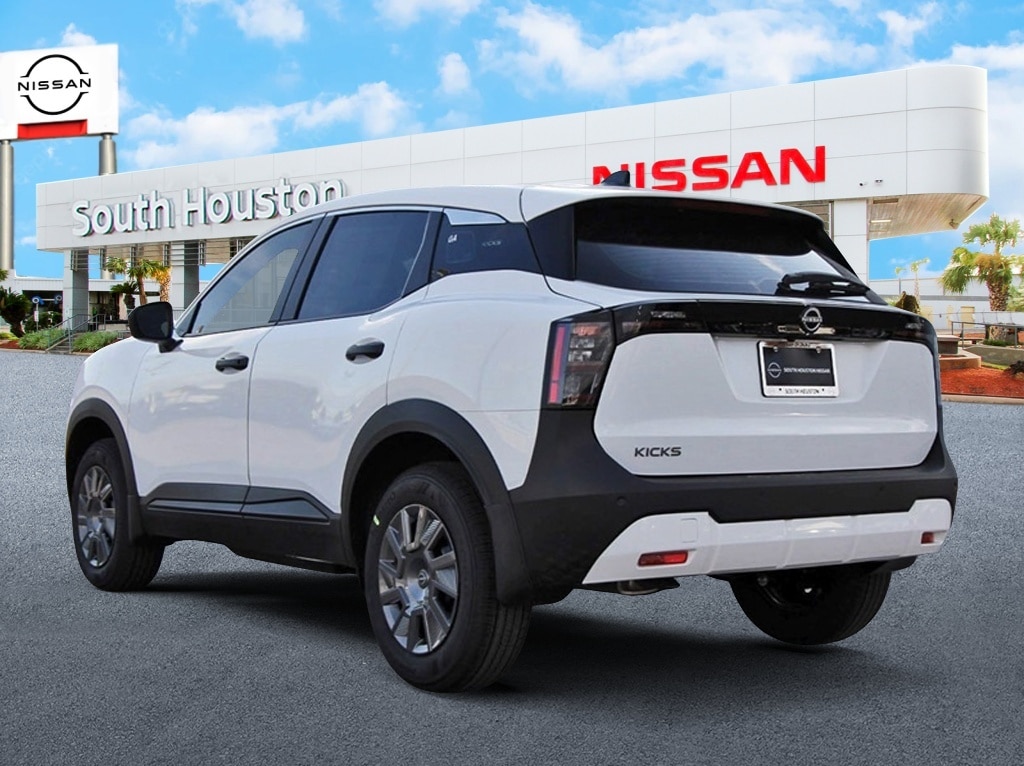 South Houston Nissan is proud to present you with another True Market Priced Vehicle. This 2026 Nissan Kicks S is loaded with the following Factory Options: 16" Steel Wheels w/Full Covers, 4 Speakers, 4-Wheel Disc Brakes, ABS brakes, Air Conditioning, AM/FM radio, Auto High-beam Headlights, Blind Spot Warning, Brake assist, Bumpers: body-color, Carpeted Floor Mats & Cargo Mat, Cloth Seat Trim, Driver door bin, Driver vanity mirror, Driver's Seat Mounted Armrest, Dual front impact airbags, Dual front side impact airbags, Electronic Stability Control, Emergency communication system, Exterior Parking Camera Rear, Front anti-roll bar, Front Bucket Seats, Front reading lights, Front wheel independent suspension, Fully automatic headlights, Illuminated entry, Knee airbag, Low tire pressure warning, NissanConnect featuring Apple CarPlay and Android Auto, Occupant sensing airbag, Outside temperature display, Overhead airbag, Panic alarm, Passenger door bin, Passenger vanity mirror, Power door mirrors, Power steering, Power windows, Radio data system, Radio: AM/FM/SiriusXM Audio System, Rear anti-roll bar, Rear reading lights, Rear side impact airbag, Rear window defroster, Rear window wiper, Remote keyless entry, Security system, Speed control, Speed-sensing steering, Splash Guards, Split folding rear seat, Spoiler, Sport steering wheel, Steering wheel mounted audio controls, Tachometer, Telescoping steering wheel, Tilt steering wheel, Traction control, Trip computer, and Variably intermittent wipers!!