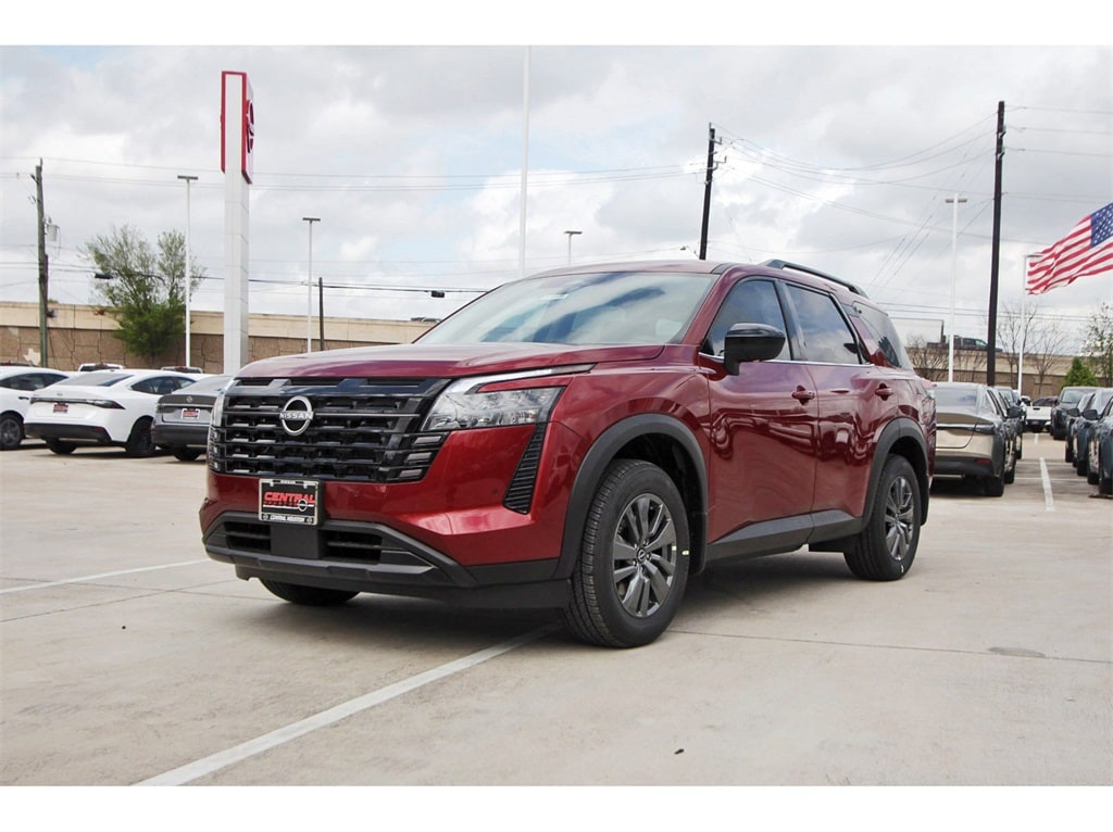 Central Houston Nissan is proud to present you with another True Market Priced Vehicle. This 2026 Nissan Pathfinder SV is loaded with the following Factory Options: 18" Painted Alloy Wheels, 3rd row seats: bench, 4-Piece Black Splash Guards, 4-Wheel Disc Brakes, 6 Speakers, ABS brakes, Air Conditioning, Alloy wheels, AM/FM radio: SiriusXM w/360L, Auto High-beam Headlights, Automatic temperature control, Bench Seat Carpeted Floor Mats, Brake assist, Bumpers: body-color, Cloth Seating Surfaces, Delay-off headlights, Driver door bin, Driver vanity mirror, Dual front impact airbags, Dual front side impact airbags, Electronic Stability Control, Emergency communication system: NissanConnect Services, Four wheel independent suspension, Front anti-roll bar, Front Bucket Seats, Front Center Armrest, Front dual zone A/C, Front reading lights, Fully automatic headlights, Garage door transmitter: myQ Connected Garage, Heated door mirrors, Heated Front Bucket Seats, Heated front seats, Illuminated entry, Knee airbag, Low tire pressure warning, NissanConnect featuring Apple CarPlay and Android Auto, Occupant sensing airbag, Outside temperature display, Overhead airbag, Overhead console, Panic alarm, Passenger door bin, Passenger vanity mirror, Power door mirrors, Power driver seat, Power Liftgate, Power steering, Power windows, Radio data system, Radio: AM/FM Audio System with NissanConnect, Rear air conditioning, Rear anti-roll bar, Rear reading lights, Rear seat center armrest, Rear side impact airbag, Rear window defroster, Rear window wiper, Reclining 3rd row seat, Remote keyless entry, Security system, Speed control, Speed-sensing steering, Split folding rear seat, Spoiler, Steering wheel mounted audio controls, Tachometer, Telescoping steering wheel, Tilt steering wheel, Traction control, Trip computer, and Variably intermittent wipers!!