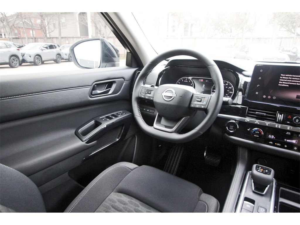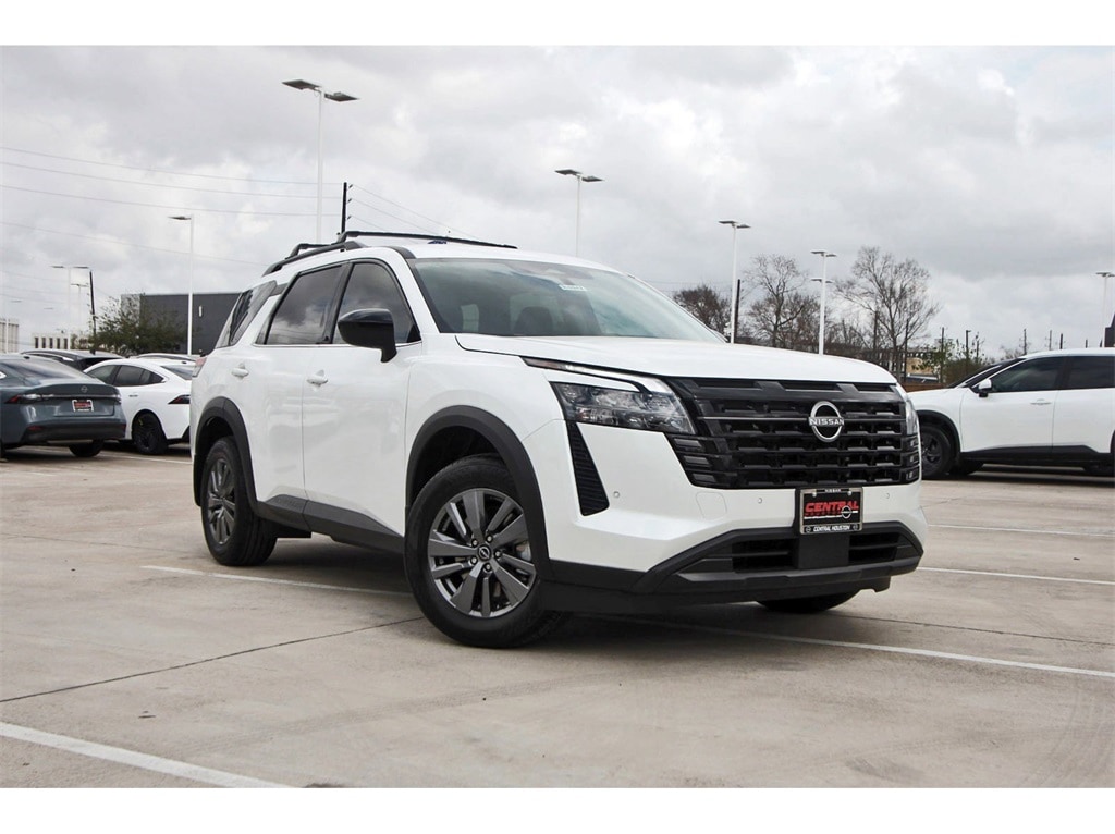 Central Houston Nissan is proud to present you with another True Market Priced Vehicle. This 2026 Nissan Pathfinder SV is loaded with the following Factory Options: 18" Painted Alloy Wheels, 3rd row seats: bench, 4-Piece Black Splash Guards, 4-Wheel Disc Brakes, 6 Speakers, ABS brakes, Air Conditioning, Alloy wheels, AM/FM radio: SiriusXM w/360L, Auto High-beam Headlights, Automatic temperature control, Bench Seat Carpeted Floor Mats, Brake assist, Bumpers: body-color, Cloth Seating Surfaces, Cross Bars, Delay-off headlights, Driver door bin, Driver vanity mirror, Dual front impact airbags, Dual front side impact airbags, Electronic Stability Control, Emergency communication system: NissanConnect Services, Four wheel independent suspension, Front anti-roll bar, Front Bucket Seats, Front Center Armrest, Front dual zone A/C, Front reading lights, Fully automatic headlights, Garage door transmitter: myQ Connected Garage, Heated door mirrors, Heated Front Bucket Seats, Heated front seats, Illuminated entry, Knee airbag, Low tire pressure warning, Nissan USB Charging Cable Set, NissanConnect featuring Apple CarPlay and Android Auto, Occupant sensing airbag, Outside temperature display, Overhead airbag, Overhead console, Panic alarm, Passenger door bin, Passenger vanity mirror, Power door mirrors, Power driver seat, Power Liftgate, Power steering, Power windows, Radio data system, Radio: AM/FM Audio System with NissanConnect, Rear air conditioning, Rear anti-roll bar, Rear reading lights, Rear seat center armrest, Rear side impact airbag, Rear window defroster, Rear window wiper, Reclining 3rd row seat, Remote keyless entry, Security system, Speed control, Speed-sensing steering, Split folding rear seat, Spoiler, Steering wheel mounted audio controls, Tachometer, Telescoping steering wheel, Tilt steering wheel, Traction control, Trip computer, and Variably intermittent wipers!!