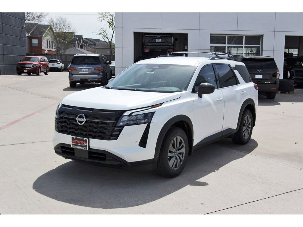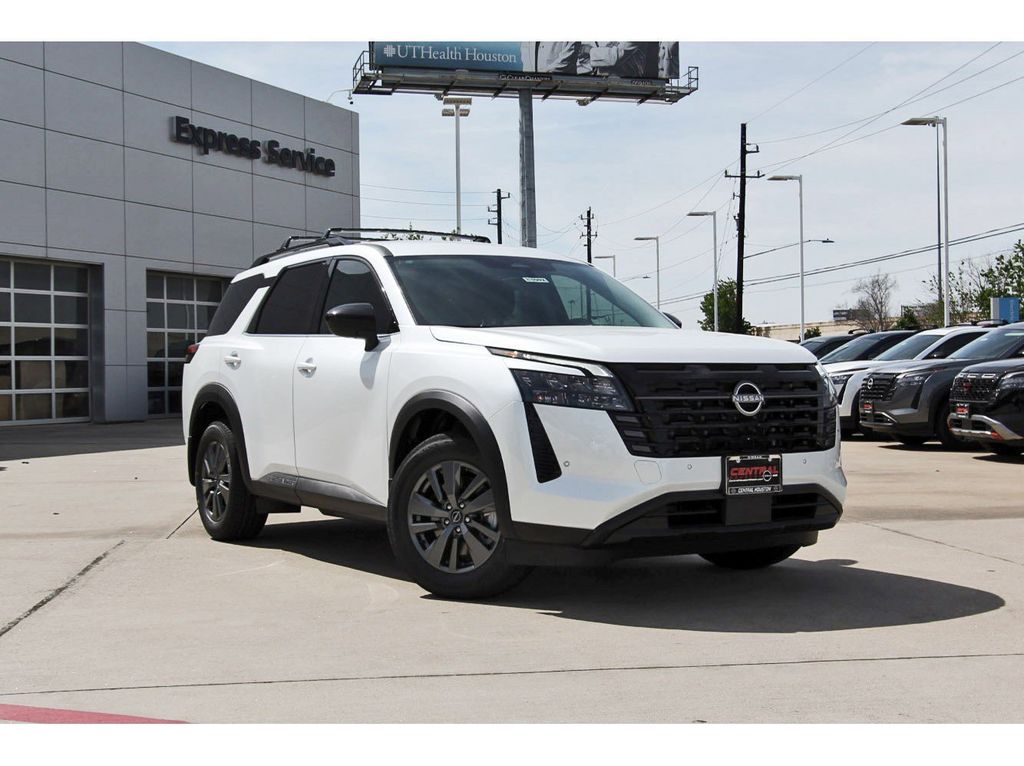 Central Houston Nissan is proud to present you with another True Market Priced Vehicle. This 2026 Nissan Pathfinder SV is loaded with the following Factory Options: 18" Painted Alloy Wheels, 3rd row seats: bench, 4-Piece Black Splash Guards, 4-Wheel Disc Brakes, 6 Speakers, ABS brakes, Air Conditioning, Alloy wheels, AM/FM radio: SiriusXM w/360L, Auto High-beam Headlights, Automatic temperature control, Bench Seat Carpeted Floor Mats, Brake assist, Bumpers: body-color, Cloth Seating Surfaces, Cross Bars, Delay-off headlights, Driver door bin, Driver vanity mirror, Dual front impact airbags, Dual front side impact airbags, Electronic Stability Control, Emergency communication system: NissanConnect Services, Four wheel independent suspension, Front anti-roll bar, Front Bucket Seats, Front Center Armrest, Front dual zone A/C, Front reading lights, Fully automatic headlights, Garage door transmitter: myQ Connected Garage, Heated door mirrors, Heated Front Bucket Seats, Heated front seats, Illuminated entry, Knee airbag, Low tire pressure warning, Nissan USB Charging Cable Set, NissanConnect featuring Apple CarPlay and Android Auto, Occupant sensing airbag, Outside temperature display, Overhead airbag, Overhead console, Panic alarm, Passenger door bin, Passenger vanity mirror, Power door mirrors, Power driver seat, Power Liftgate, Power steering, Power windows, Radio data system, Radio: AM/FM Audio System with NissanConnect, Rear air conditioning, Rear anti-roll bar, Rear reading lights, Rear seat center armrest, Rear side impact airbag, Rear window defroster, Rear window wiper, Reclining 3rd row seat, Remote keyless entry, Security system, Speed control, Speed-sensing steering, Split folding rear seat, Spoiler, Steering wheel mounted audio controls, Tachometer, Telescoping steering wheel, Tilt steering wheel, Traction control, Trip computer, and Variably intermittent wipers!!