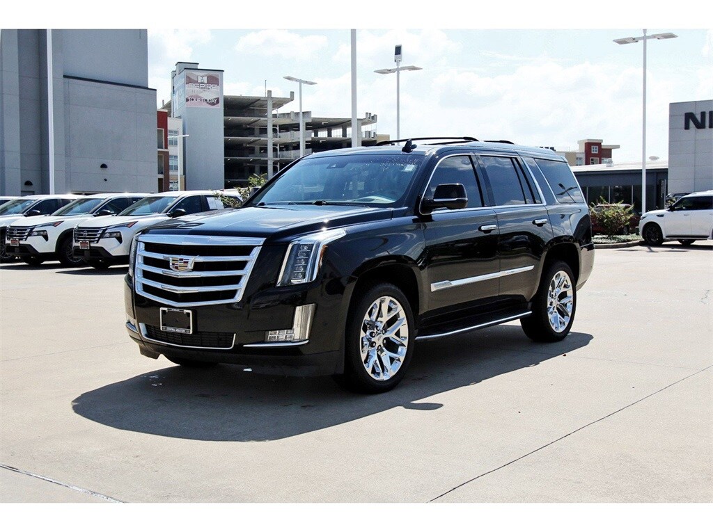 Central Houston Nissan is proud to present you with another True Market Priced Pre-Owned Vehicle. This 2017 Cadillac Escalade Luxury is loaded with the following Factory Options: 4WD and Kona Brown With Jet Black Accents Leather Driver Awareness Package (Forward Collision Alert, IntelliBeam Headlamps, Lane Change Alert, Lane Keep Assist w/Lane Departure Warning, Low Speed Forward Automatic Braking, Rear Cross-Traffic Alert, and Side Blind Zone Alert), Preferred Equipment Group 1SB (Power Tilt-Sliding Sunroof w/Express-Open/Close, Rear Camera Mirror, Rear Camera Washer, Reconfigurable 4-Color Head-Up Display, and Second Row Bucket Seats), Theft-Deterrent Package (Inclination Sensor, Theft-Deterrent Alarm System, and Vehicle Interior Movement Sensor), 4WD, Kona Brown With Jet Black Accents Leather, 12-Way Power Front Passenger Seat Adjuster, 16 Speakers, 2-Position Memory For Driver's Seat Adjuster, 3.23 Axle Ratio, 3rd row seats: split-bench, 4-Wheel Disc Brakes, ABS brakes, Adaptive suspension, Adjustable pedals, Air Conditioning, All-Weather 1st, 2nd & 3rd Row Floor Mats (LPO), Alloy wheels, AM/FM radio: SiriusXM, Apple CarPlay, Auto High-beam Headlights, Auto tilt-away steering wheel, Auto-dimming door mirrors, Auto-leveling suspension, Automatic temperature control, Bodyside moldings, Bose Centerpoint Surround Sound System, Brake assist, Bumpers: body-color, CD player, Chrome Exhaust Tip, Compass, Delay-off headlights, Driver door bin, Driver vanity mirror, Dual front impact airbags, Dual front side impact airbags, DVD-Audio, Electronic Stability Control, Emergency communication system: OnStar Protection, Exterior Parking Camera Rear, Front anti-roll bar, Front Bucket Seats, Front Center Armrest w/Storage, Front dual zone A/C, Front reading lights, Front wheel independent suspension, Fully automatic headlights, Garage door transmitter, HD Radio, Heads-Up Display, Heated & Cooled Front Bucket Seats, Heated door mirrors, Heated front seats, Heated rear seats, Heated steering wheel, Illuminated entry, Leather Seating Surfaces, Leather Shift Knob, Leather steering wheel, Low tire pressure warning, Magnetic Ride Control Suspension, Memory seat, Navigation System, NavTraffic, Occupant sensing airbag, Outside temperature display, Overhead airbag, Overhead console, Panic alarm, Passenger door bin, Passenger vanity mirror, Pedal memory, Power door mirrors, Power driver seat, Power Liftgate, Power moonroof, Power passenger seat, Power steering, Power windows, Radio data system, Radio: Cadillac CUE Info/Media Ctrl Sys w/Embd Nav, Rain sensing wipers, Rear air conditioning, Rear anti-roll bar, Rear audio controls, Rear reading lights, Rear Seat Entertainment System, Rear window defroster, Rear window wiper, Remote keyless entry, Roof rack: rails only, Security system, Single Slot CD/MP3 Player, SiriusXM Satellite Radio, Speed control, Split folding rear seat, Spoiler, Steering wheel memory, Steering wheel mounted audio controls, Tachometer, Telescoping steering wheel, Tilt steering wheel, Traction control, Trip computer, Turn signal indicator mirrors, Variably intermittent wipers, Ventilated front seats, Wheel Locks, Wheels: 22" x 9" 7-Spoke Aluminum, and Wheels: 22" x 9" Dual 7-Spoke Ultra-Bright Aluminum!!