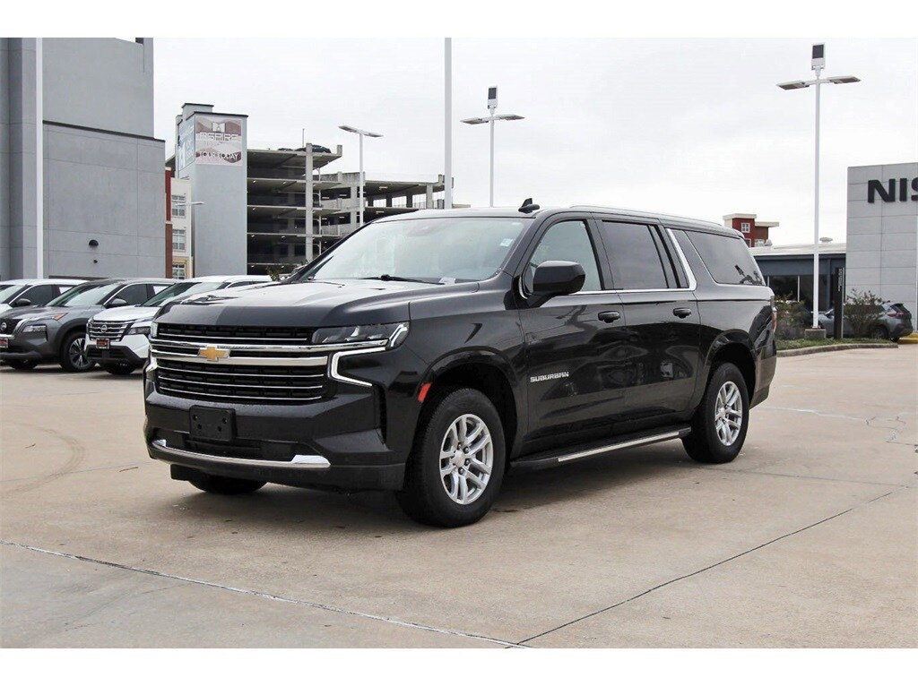 Central Houston Nissan is proud to present you with another True Market Priced Pre-Owned Vehicle. This 2023 Chevrolet Suburban LT is loaded with the following Factory Options: License Plate Front Mounting Package, Preferred Equipment Group 1LT (10-Way Power Driver & Passenger Seat Adjusters, 1st & 2nd Row Color-Keyed Carpeted Floor Mats, Auto-Dimming Inside Rear-View Mirror, Bose 9-Speaker Stereo Audio System Feature, Bright Front & Rear Door Sill Plates, Color-Keyed Carpeting Floor Covering, Driver & Front Outboard Passenger Airbags, Enhanced Driver Information Center, Floor Console w/Storage Area, Hands-Free Rear Power Programmable Liftgate, Heated Driver & Front Passenger Seats, Infotainment Display, LED Daytime Running Lamps, Memory Settings For Driver, Remote Start, SiriusXM Radio w/360L, Universal Home Remote, Wireless Charging, and Wrapped Steering Wheel), 3.23 Rear Axle Ratio, 3rd row seats: split-bench, 4-Wheel Disc Brakes, 9 Speakers, ABS brakes, Air Conditioning, Alloy wheels, AM/FM radio: SiriusXM with 360L, Apple CarPlay/Android Auto, Auto High-beam Headlights, Auto-dimming Rear-View mirror, Automatic temperature control, Brake assist, Bumpers: body-color, Compass, Delay-off headlights, Deleted 3 Years of Remote Access, Driver door bin, Driver vanity mirror, Dual front impact airbags, Dual front side impact airbags, Electronic Stability Control, Emergency communication system: OnStar and Chevrolet connected services capable, Four wheel independent suspension, Front anti-roll bar, Front Bucket Seats, Front Center Armrest, Front dual zone A/C, Front reading lights, Fully automatic headlights, Garage door transmitter, Heated door mirrors, Heated front seats, Illuminated entry, Leather-Appointed Seating, Low tire pressure warning, Memory seat, Navigation System, Occupant sensing airbag, Outside temperature display, Overhead airbag, Overhead console, Panic alarm, Passenger door bin, Passenger vanity mirror, Power door mirrors, Power driver seat, Power Liftgate, Power passenger seat, Power steering, Power windows, Premium audio system: Chevrolet Infotainment 3 Premium, Premium Smooth Ride Suspension, Radio: Chevrolet Infotainment 3 Premium System, Rain sensing wipers, Rear air conditioning, Rear anti-roll bar, Rear reading lights, Rear seat center armrest, Rear window defroster, Rear window wiper, Remote keyless entry, Roof rack: rails only, Security system, Speed control, Speed-sensing steering, Split folding rear seat, Spoiler, Steering wheel mounted audio controls, Tachometer, Telescoping steering wheel, Tilt steering wheel, Traction control, Trip computer, Variably intermittent wipers, Voltmeter, and Wheels: 18" x 8.5" Bright Silver Painted Aluminum!!