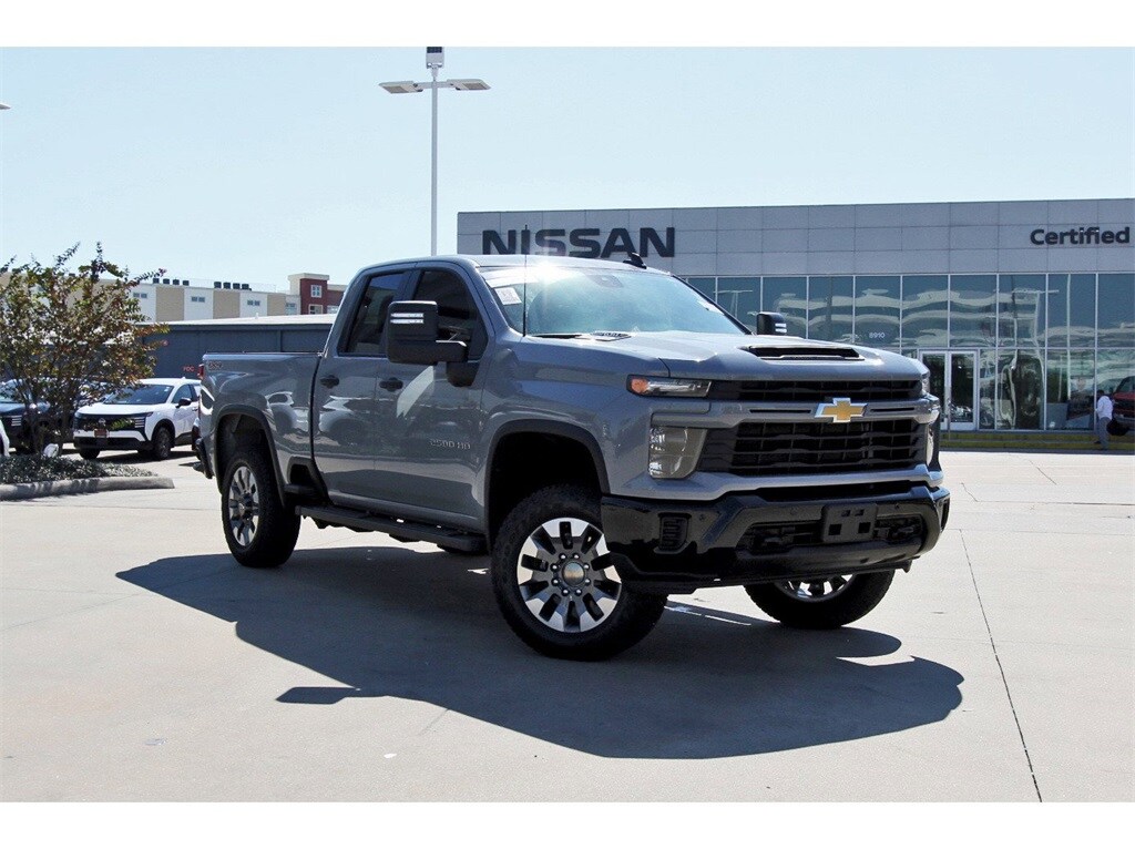 Central Houston Nissan is proud to present you with another True Market Priced Pre-Owned Vehicle. This 2025 Chevrolet Silverado 2500HD Custom is loaded with the following Factory Options: 10-Speed Automatic, 4WD, and Black Cloth Custom Convenience Package (10-Way Power Driver Seat Adjuster w/Lumbar, 120-Volt Bed Mounted Power Outlet, 120-Volt Interior Power Outlet, Dual Rear USB Ports (Charge Only), Electric Rear-Window Defogger, EZ Lift Power Lock & Release Tailgate, LED Cargo Area Lighting, Remote Vehicle Starter System, and Unauthorized Entry Theft-Deterrent System), Custom Value Package (Auto-Dimming Inside Rear-View Mirror and Heated & Auto-Dimming Vertical Trailering Mirrors), CX Safety Package (Lane Change Alert w/Side Blind Zone Alert, Rear Cross Traffic Alert, and Ultrasonic Front & Rear Park Assist), Preferred Equipment Group 1CX (170 Amp Alternator, 2-Speed Electronic Shift Transfer Case, 3.5" Diagonal Monochromatic Display DIC, Black Mirror Caps, Bluetooth® For Phone, Chevrolet Connected Access Capable, Color-Keyed Carpeting Floor Covering, Compass, Deep-Tinted Glass, Electronic Cruise Control w/Set & Resume Speed, Front Rubberized Vinyl Floor Mats, HD Rear Vision Camera, Heated Vertical Trailering Mirrors, Locking Tailgate, Manual Tailgate Function w/No EZ Lift, Manual Tilt-Wheel Steering Column, OnStar Services Capable, Power Door Locks, Power Front Windows w/Driver Express Up/Down, Power Front Windows w/Passenger Express Down, Power Rear Windows w/Express Down, Push Button Start, Rear 60/40 Folding Bench Seat (Folds Up), Rear Rubberized Vinyl Floor Mats, Remote Keyless Entry, SiriusXM w/360L Trial Subscription, Standard Tailgate, Wi-Fi Hotspot Capable, and Wireless Phone Projection), Suspension Package, 10-Speed Automatic, 4WD, Black Cloth, 3.73 Rear Axle Ratio, 4-Wheel Disc Brakes, 5th Wheel & Gooseneck Trailer Wiring Provisions, 6 Speakers, 6-Speaker Audio System, 720 Cold-Cranking Amps Heavy-Duty Battery, ABS brakes, Air Conditioning, All-Weather Floor Liners (LPO), Alloy wheels, AM/FM radio: SiriusXM with 360L, Apple CarPlay/Android Auto, Auto High-beam Headlights, Brake assist, Cloth Seat Trim, Delay-off headlights, Driver door bin, Dual front impact airbags, Dual front side impact airbags, Durabed Pickup Bed, Electronic Stability Control, Emergency communication system: OnStar, Front 40/20/40 Split-Bench Seats w/Lockable Storage, Front anti-roll bar, Front Center Armrest w/Storage, Front License Plate Kit, Front reading lights, Front wheel independent suspension, Fully automatic headlights, Heated door mirrors, Illuminated entry, Low tire pressure warning, Multi-Flex Tailgate, Occupant sensing airbag, Outside temperature display, Overhead airbag, Overhead console, Panic alarm, Passenger door bin, Passenger vanity mirror, Power door mirrors, Power steering, Power windows, Premium audio system: Chevrolet Infotainment 3, Radio: Chevrolet Infotainment 3 System, Rear reading lights, Rear step bumper, Remote keyless entry, Speed control, Split folding rear seat, Tachometer, Tilt steering wheel, Traction control, Trip computer, Turn signal indicator mirrors, Variably intermittent wipers, Voltmeter, and Wheels: 20" 10-Spoke Machined Aluminum!!