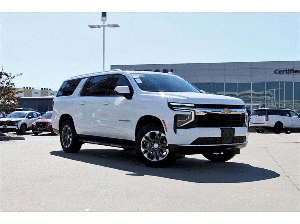 Central Houston Nissan is proud to present you with another True Market Priced Pre-Owned Vehicle. This 2025 Chevrolet Suburban LS is loaded with the following Factory Options: License Plate Front Mounting Package, Preferred Equipment Group 1LS, 2-Way Driver Power Lumbar Seat Adjuster, 2-Way Front Passenger Power Lumbar Seat Adjuster, 3.23 Rear Axle Ratio, 3rd row seats: split-bench, 4-Wheel Disc Brakes, 6 Speakers, 6-Speaker Audio System, 6-Way Power Front Passenger Seat Adjuster, 8-Way Power Driver Seat Adjuster, ABS brakes, Air Conditioning, Alloy wheels, AM/FM radio: SiriusXM with 360L, Apple CarPlay/Android Auto, Auto High-beam Headlights, Automatic temperature control, Brake assist, Bumpers: body-color, Compass, Delay-off headlights, Driver door bin, Driver vanity mirror, Dual front impact airbags, Dual front side impact airbags, Electronic Stability Control, Emergency communication system: OnStar Services capable, Exterior Parking Camera Rear, Four wheel independent suspension, Front anti-roll bar, Front Bucket Seats, Front Center Armrest, Front dual zone A/C, Front reading lights, Fully automatic headlights, Heated door mirrors, Illuminated entry, Low tire pressure warning, Navigation system: Google built-in compatibility (select service plan required, terms and limitations apply), Occupant sensing airbag, Outside temperature display, Overhead airbag, Overhead console, Panic alarm, Passenger door bin, Passenger vanity mirror, Power door mirrors, Power driver seat, Power passenger seat, Power steering, Power windows, Premium Cloth Seat Trim, Premium Smooth Ride Suspension, Radio data system, Radio: 17.7" Diagonal Advanced Color LCD Display, Rain sensing wipers, Rear air conditioning, Rear anti-roll bar, Rear reading lights, Rear seat center armrest, Rear window defroster, Rear window wiper, Remote keyless entry, Security system, SiriusXM w/360L Trial Subscription, Speed control, Speed-sensing steering, Split folding rear seat, Spoiler, Steering wheel mounted audio controls, Tachometer, Telescoping steering wheel, Tilt steering wheel, Traction control, Trip computer, Variably intermittent wipers, Voltmeter, Wheels: 18" x 8.5" Bright Silver Painted Aluminum, Wheels: 20" x 9" Machined Aluminum, and Wireless Apple CarPlay/Wireless Android Auto!!