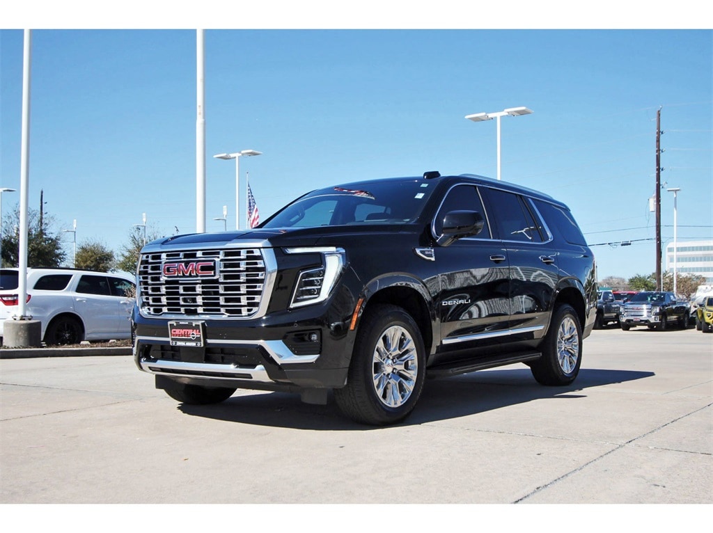 Central Houston Nissan is proud to present you with another True Market Priced Pre-Owned Vehicle. This 2025 GMC Yukon Denali is loaded with the following Factory Options: 4WD License Plate Front Mounting Package, Preferred Equipment Group 5SA (15" Diagonal Multi-Color Head-Up Display, 4-Way Power Driver Lumbar Seat Adjuster, 4-Way Power Front Passenger Lumbar Seat Adjuster, AutoSense Hands-Free Power Liftgate, Bright Front and Rear Door Sill Plates, Dual Exhaust System, Galvano Bodyside Moldings, Magnetic Ride Control Suspension, Perforated Heather and Ventilated Driver and Front Passenger Seats, Power Release 2nd Row Bucket Seats, Power Tilt and Telescopic Steering Column, and Wheels: 20" x 9" 6-Spoke Polished Aluminum), 4WD, 10 Speakers, 3.23 Rear Axle Ratio, 3rd row seats: split-bench, 4-Wheel Disc Brakes, ABS brakes, Adaptive suspension, Air Conditioning, Alloy wheels, AM/FM radio: SiriusXM with 360L, Apple CarPlay/Android Auto, Audio memory, Auto High-beam Headlights, Auto-dimming door mirrors, Auto-dimming Rear-View mirror, Auto-leveling suspension, Automatic temperature control, Bodyside moldings, Bose 10-Speaker Surround with CenterPoint, Brake assist, Bumpers: body-color, Compass, Delay-off headlights, Deleted OnStar Basics, Driver door bin, Driver vanity mirror, Dual front impact airbags, Dual front side impact airbags, Electronic Stability Control, Emergency communication system: OnStar and GMC connected services capable, Exterior Parking Camera Rear, Four wheel independent suspension, Front anti-roll bar, Front Bucket Seats, Front Center Armrest, Front dual zone A/C, Front fog lights, Front reading lights, Fully automatic headlights, Garage door transmitter, Heads-Up Display, Heated door mirrors, Heated Driver and Front Passenger Seats, Heated front seats, Heated rear seats, Heated steering wheel, Illuminated entry, Low tire pressure warning, Memory seat, Navigation system: GMC Connected Navigation, Occupant sensing airbag, Outside temperature display, Overhead airbag, Overhead console, Panic alarm, Passenger door bin, Passenger vanity mirror, Perforated Leather Seating Surfaces, Power door mirrors, Power driver seat, Power Liftgate, Power passenger seat, Power steering, Power windows, Radio: 16.8" Diagonal Premium GMC Infotainment System, Rain sensing wipers, Rear air conditioning, Rear anti-roll bar, Rear reading lights, Rear window defroster, Rear window wiper, Remote keyless entry, Security system, SiriusXM with 360L, Speed control, Speed-sensing steering, Split folding rear seat, Spoiler, Steering wheel memory, Steering wheel mounted audio controls, Tachometer, Telescoping steering wheel, Tilt steering wheel, Traction control, Trip computer, Turn signal indicator mirrors, Variably intermittent wipers, Ventilated front seats, and Voltmeter!!