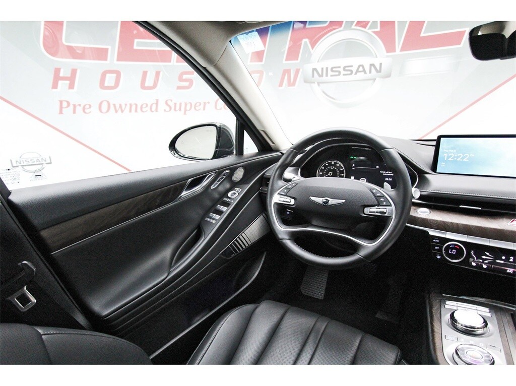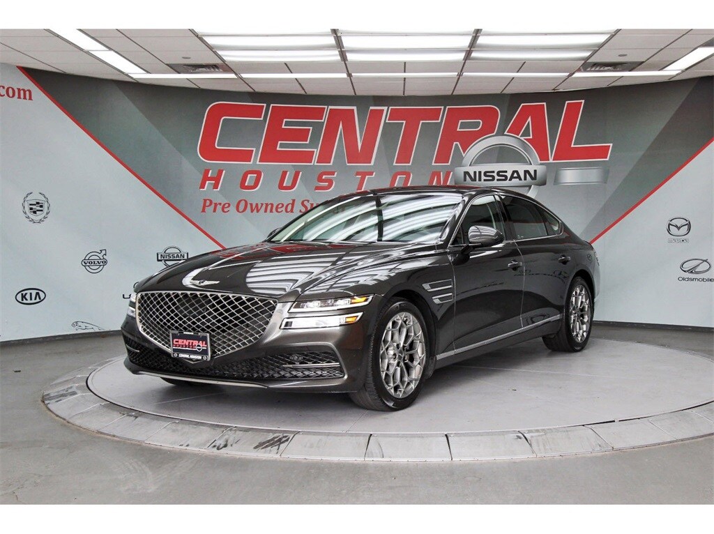 Central Houston Nissan is proud to present you with another True Market Priced Pre-Owned Vehicle. This 2023 Genesis G80 2.5T is loaded with the following Factory Options: Advanced Package (3-Zone Climate Control, Matte Finish Wood Trim, Panoramic Roof, Power Rear & Manual Rear Door Sunshades, Power Trunk, Radio: AM/FM/HD/SiriusXM Lexicon Audio System, and Ventilated Front Seats), 12 Speakers, 4-Wheel Disc Brakes, ABS brakes, Air Conditioning, Alloy wheels, AM/FM radio: SiriusXM, Android Auto & Apple CarPlay, Anti-whiplash front head restraints, Auto High-beam Headlights, Auto tilt-away steering wheel, Auto-dimming door mirrors, Auto-dimming Rear-View mirror, Automatic temperature control, Bumpers: body-color, Compass, Delay-off headlights, Driver door bin, Driver vanity mirror, Dual front impact airbags, Dual front side impact airbags, Electronic Stability Control, Emergency communication system: Genesis Connected Services, Exterior Parking Camera Rear, First Aid Kit, Four wheel independent suspension, Front anti-roll bar, Front Bucket Seats, Front Center Armrest, Front dual zone A/C, Front reading lights, Fully automatic headlights, Garage door transmitter: HomeLink, Heated door mirrors, Heated Front Bucket Seats, Heated front seats, Illuminated entry, Knee airbag, Leather steering wheel, Leatherette Seating Surfaces, Low tire pressure warning, Memory seat, Mud Guards, Navigation System, Occupant sensing airbag, Outside temperature display, Overhead airbag, Overhead console, Panic alarm, Passenger door bin, Passenger vanity mirror, Power door mirrors, Power driver seat, Power passenger seat, Power steering, Power windows, Radio data system, Radio: AM/FM/HD/SiriusXM Audio System, Rain sensing wipers, Rear anti-roll bar, Rear reading lights, Rear seat center armrest, Rear side impact airbag, Rear window defroster, Remote keyless entry, Security system, Speed control, Speed-sensing steering, Speed-Sensitive Wipers, Steering wheel memory, Steering wheel mounted audio controls, Tachometer, Telescoping steering wheel, Tilt steering wheel, Traction control, Trip computer, Turn signal indicator mirrors, Variably intermittent wipers, Wheel Locks, and Wheels: 18"x8.0J Alloy!!