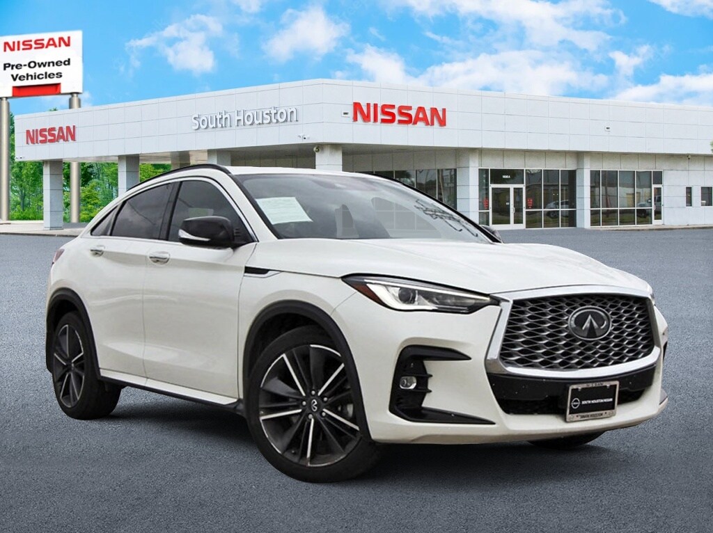 This 2023 INFINITI QX55 LUXE is a luxury crossover that blends bold design with cutting-edge technology. With Majestic White exterior, Graphite interior, and AWD, this vehicle delivers confident performance and refined style in every drive.