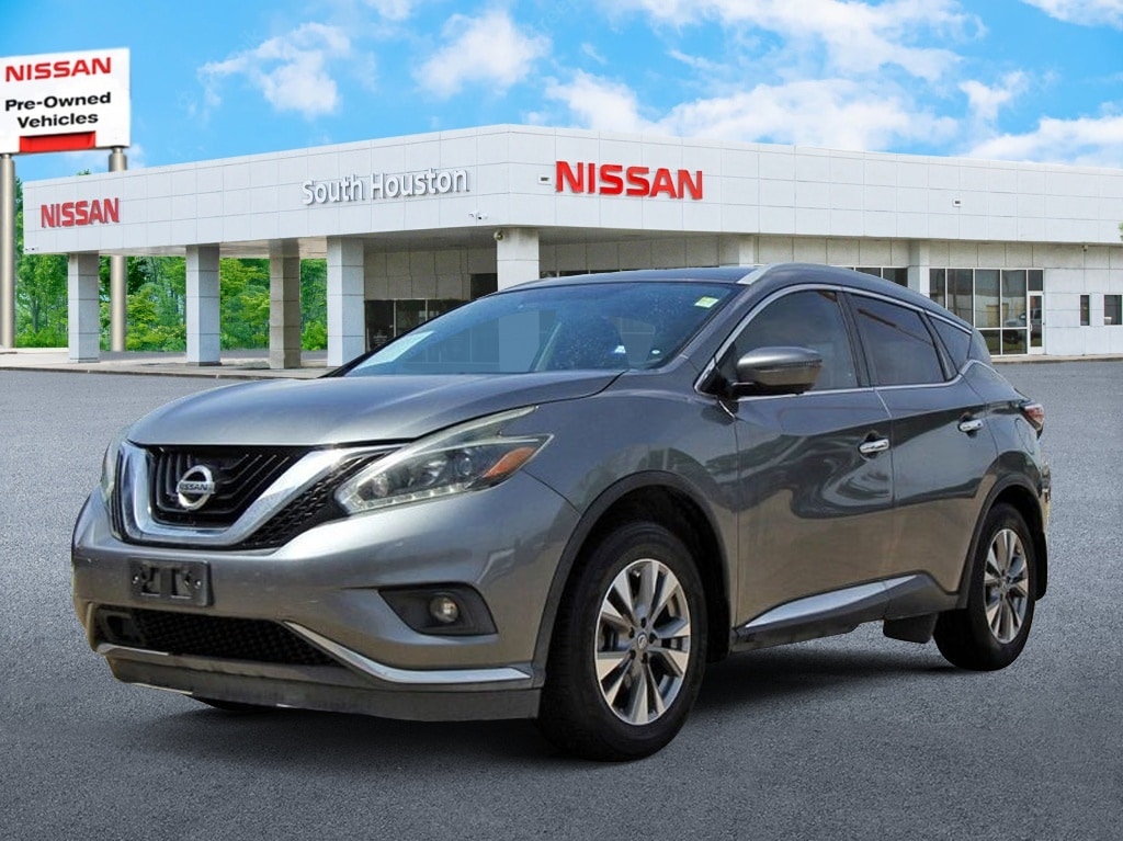 South Houston Nissan is proud to present you with another True Market Priced Pre-Owned Vehicle. This 2018 Nissan Murano SL is loaded with the following Factory Options: CVT with Xtronic Cargo Package (Cargo Area Protector, Cargo Net, First Aid Kit, and Retractable Cargo Cover), CVT with Xtronic, 11 Speakers, 4-Wheel Disc Brakes, 4.667 Axle Ratio, ABS brakes, Activation Disclaimer, Air Conditioning, Alloy wheels, AM/FM radio: SiriusXM, AM/FM/CD/MP3/WMA Audio System, Apple CarPlay/Android Auto, Auto-dimming Rear-View mirror, Automatic temperature control, Blind Spot Warning, Brake assist, Bumpers: body-color, Carpeted Floor Mats & Carpeted Cargo Mat, CD player, Child-Seat-Sensing Airbag, Compass, Delay-off headlights, Driver door bin, Driver vanity mirror, Dual front impact airbags, Dual front side impact airbags, Electronic Stability Control, Four wheel independent suspension, Front anti-roll bar, Front Bucket Seats, Front Center Armrest, Front dual zone A/C, Front fog lights, Front reading lights, Fully automatic headlights, Garage door transmitter: HomeLink, Heated door mirrors, Heated Front Bucket Seats, Heated front seats, Heated rear seats, Heated steering wheel, Illuminated entry, Knee airbag, Leather Appointed Seat Trim, Leather Shift Knob, Low tire pressure warning, Memory seat, Navigation System, Occupant sensing airbag, Outside temperature display, Overhead airbag, Overhead console, Panic alarm, Passenger door bin, Passenger vanity mirror, Power door mirrors, Power driver seat, Power Liftgate, Power passenger seat, Power steering, Power windows, Radio data system, Rear anti-roll bar, Rear Bumper Protector, Rear reading lights, Rear seat center armrest, Rear window defroster, Rear window wiper, Remote keyless entry, Roof rack: rails only, Security system, Speed control, Speed-sensing steering, Speed-Sensitive Wipers, Splash Guards, Split folding rear seat, Spoiler, Steering wheel mounted audio controls, Tachometer, Telescoping steering wheel, Tilt steering wheel, Traction control, Trip computer, Turn signal indicator mirrors, Variably intermittent wipers, and Wheels: 18" Machined Aluminum-Alloy!!