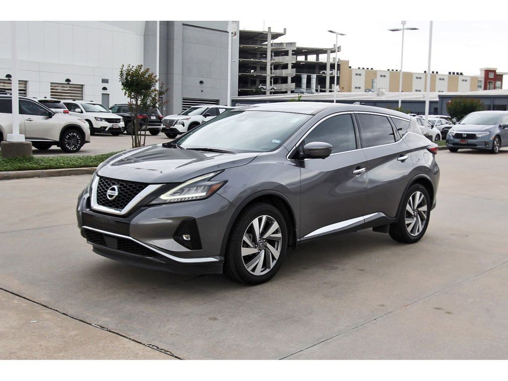 Central Houston Nissan is proud to present you with another True Market Priced Pre-Owned Vehicle. This 2021 Nissan Murano SL is loaded with the following Factory Options: CVT with Xtronic SL Moonroof Package (Dual Panel Panoramic Moonroof), CVT with Xtronic, 11 Speakers, 4-Wheel Disc Brakes, 4.667 Axle Ratio, ABS brakes, Air Conditioning, Alloy wheels, AM/FM radio: SiriusXM, AM/FM/CD/MP3/WMA Audio System, Auto High-beam Headlights, Auto-dimming Rear-View mirror, Automatic temperature control, Blind Spot Warning, Brake assist, Bumpers: body-color, Carpeted Floor Mats & Carpeted Cargo Mat, CD player, Child-Seat-Sensing Airbag, Delay-off headlights, Driver door bin, Driver vanity mirror, Dual front impact airbags, Dual front side impact airbags, Electronic Stability Control, Exterior Parking Camera Rear, Four wheel independent suspension, Front anti-roll bar, Front Bucket Seats, Front Center Armrest, Front dual zone A/C, Front fog lights, Front reading lights, Fully automatic headlights, Garage door transmitter: HomeLink, Heated door mirrors, Heated Front Bucket Seats, Heated front seats, Heated rear seats, Heated steering wheel, Illuminated entry, Illuminated Kick Plates, Illuminated Kick Plates (PIO), Knee airbag, Leather-Appointed Seat Trim, Low tire pressure warning, Memory seat, Navigation system: NissanConnect Navigation, NissanConnect featuring Apple CarPlay and Android Auto, Occupant sensing airbag, Outside temperature display, Overhead airbag, Overhead console, Panic alarm, Passenger door bin, Passenger vanity mirror, Power door mirrors, Power driver seat, Power Liftgate, Power passenger seat, Power steering, Power windows, Radio data system, Rear anti-roll bar, Rear Bumper Protector, Rear reading lights, Rear seat center armrest, Rear side impact airbag, Rear window defroster, Rear window wiper, Remote keyless entry, Roof rack: rails only, Security system, Speed control, Speed-sensing steering, Speed-Sensitive Wipers, Splash Guards, Split folding rear seat, Spoiler, Steering wheel mounted audio controls, Tachometer, Telescoping steering wheel, Tilt steering wheel, Traction control, Trip computer, Turn signal indicator mirrors, Variably intermittent wipers, and Wheels: 20" Machined Aluminum-Alloy!!