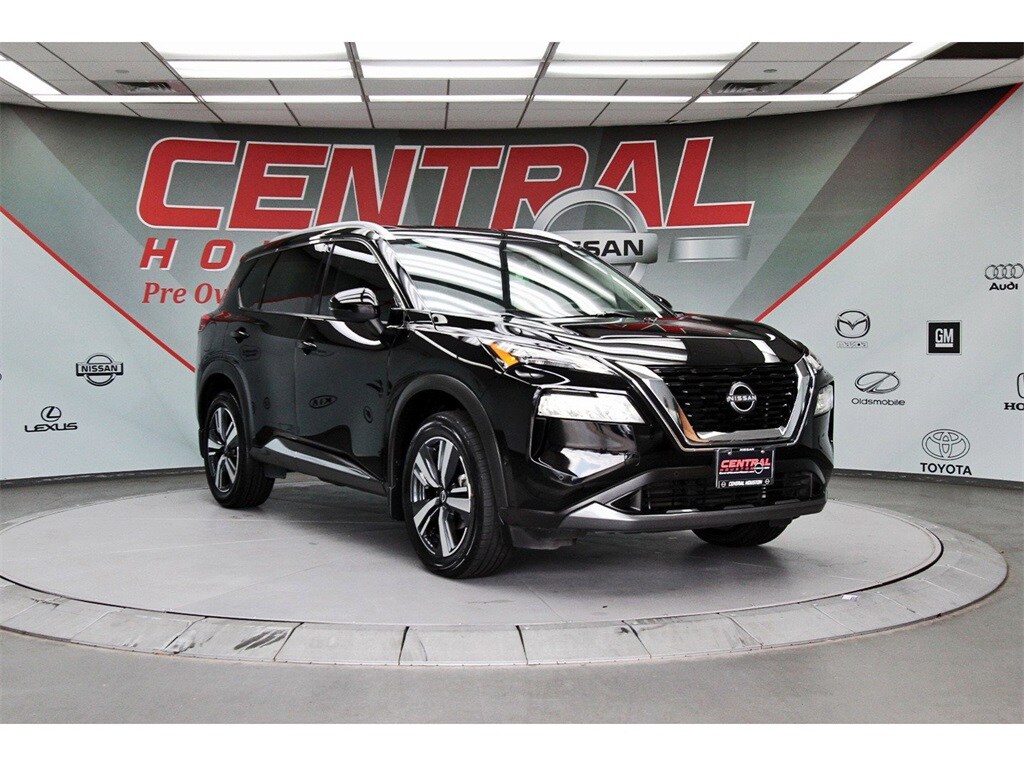 Central Houston Nissan is proud to present you with another True Market Priced Pre-Owned Vehicle. This 2023 Nissan Rogue SL is loaded with the following Factory Options: SL Premium Package (Bose Premium Audio System, Front, Side & Rear Sonar, Motion Activated Power Liftgate, ProPILOT Assist w/Navi-link, Radio: AM/FM NissanConnect w/Navigation, Rear Door Sunshades, Traffic Sign Recognition, and Tri-Zone HVAC), 19" Aluminum Alloy Wheels, 4-Wheel Disc Brakes, 5.604 Axle Ratio, 6 Speakers, ABS brakes, Air Conditioning, Alloy wheels, AM/FM Radio, AM/FM radio: SiriusXM, Auto High-beam Headlights, Auto-dimming Rear-View mirror, Automatic temperature control, Black Splash Guards (Set of 4), Brake assist, Bumpers: body-color, Chrome Rear Bumper Protector, Delay-off headlights, Driver door bin, Driver vanity mirror, Dual front impact airbags, Dual front side impact airbags, Electronic Stability Control, Emergency communication system: NissanConnect Services, First Aid Kit, Floor Mats w/2-Piece Cargo Area Protector, Four wheel independent suspension, Frameless Rearview Mirror w/Universal Remote, Front anti-roll bar, Front Bucket Seats, Front Center Armrest, Front dual zone A/C, Front reading lights, Fully automatic headlights, Heated door mirrors, Heated Front Bucket Seats, Heated front seats, Heated steering wheel, Illuminated entry, Illuminated Kick Plates, Knee airbag, Leather steering wheel, Leather-Appointed Seat Trim, Low tire pressure warning, Memory seat, NissanConnect featuring Apple CarPlay and Android Auto, Occupant sensing airbag, Outside temperature display, Overhead airbag, Overhead console, Panic alarm, Passenger door bin, Passenger vanity mirror, Power door mirrors, Power driver seat, Power Liftgate, Power moonroof, Power passenger seat, Power steering, Power windows, Radio data system, Rear anti-roll bar, Rear Parking Sensors, Rear reading lights, Rear seat center armrest, Rear side impact airbag, Rear window defroster, Rear window wiper, Remote keyless entry, Security system, Speed control, Speed-Sensitive Wipers, Split folding rear seat, Spoiler, Steering wheel mounted audio controls, Tachometer, Telescoping steering wheel, Tilt steering wheel, Traction control, Trip computer, Turn signal indicator mirrors, and Variably intermittent wipers!!