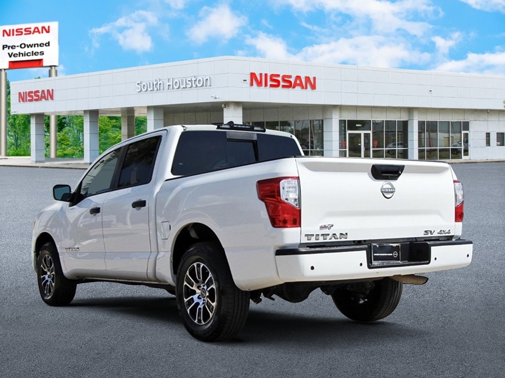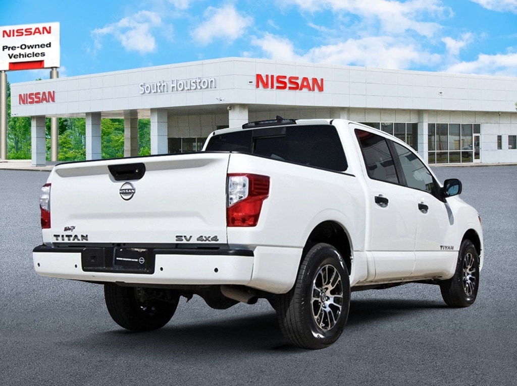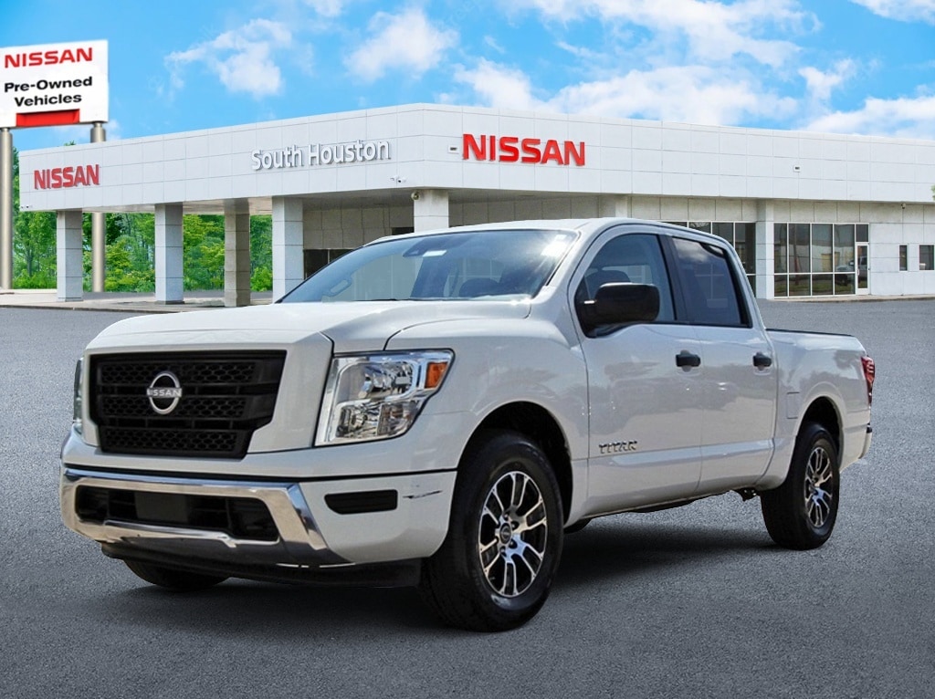 South Houston Nissan is proud to present you with another True Market Priced Pre-Owned Vehicle. This 2023 Nissan Titan SV is loaded with the following Factory Options: 4WD 4WD, 3.69 Axle Ratio, 4-Wheel Disc Brakes, 6 Speakers, ABS brakes, Air Conditioning, Alloy wheels, AM/FM radio: SiriusXM, Auto High-beam Headlights, Blind Spot Warning, Brake assist, Bumpers: chrome, Cloth Seat Trim w/Vinyl Bolsters, Driver door bin, Driver vanity mirror, Dual front impact airbags, Dual front side impact airbags, Electronic Stability Control, Front anti-roll bar, Front Center Armrest w/Storage, Front reading lights, Front Split Bench Seat (40/20/40), Front wheel independent suspension, Fully automatic headlights, Heated door mirrors, Illuminated entry, Knee airbag, Low tire pressure warning, NissanConnect featuring Apple CarPlay and Android Auto, Occupant sensing airbag, Outside temperature display, Overhead airbag, Overhead console, Panic alarm, Passenger door bin, Passenger vanity mirror, Power door mirrors, Power steering, Power windows, Radio data system, Radio: NissanConnect AM/FM, Rear anti-roll bar, Rear Parking Sensors, Rear reading lights, Rear seat center armrest, Rear step bumper, Rear window defroster, Remote keyless entry, Security system, Speed control, Speed-sensing steering, Speed-Sensitive Wipers, Split folding rear seat, Steering wheel mounted audio controls, Tachometer, Telescoping steering wheel, Tilt steering wheel, Traction control, Trip computer, Variably intermittent wipers, Voltmeter, and Wheels: 18" x 8" Painted & Machined Alloy!!