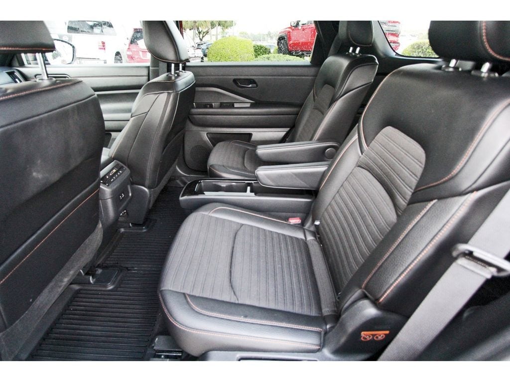 South Houston Nissan is proud to present you with another True Market Priced Pre-Owned Vehicle. This 2024 Nissan Pathfinder Rock Creek is loaded with the following Factory Options: 4WD 4WD, 3rd row seats: bench, 4-Wheel Disc Brakes, 6 Speakers, ABS brakes, Air Conditioning, Alloy wheels, AM/FM radio: SiriusXM, Auto High-beam Headlights, Automatic temperature control, Axle Ratio: 4.334, Black Splash Guards (Set of 4), Brake assist, Delay-off headlights, Driver door bin, Driver vanity mirror, Dual front impact airbags, Dual front side impact airbags, Electronic Stability Control, Emergency communication system, Four wheel independent suspension, Front anti-roll bar, Front Bucket Seats, Front Center Armrest, Front dual zone A/C, Front fog lights, Front reading lights, Fully automatic headlights, Heated door mirrors, Heated Front Bucket Seats, Heated front seats, Illuminated entry, Knee airbag, Leather steering wheel, Leatherette-Appointed Seating Surfaces, Low tire pressure warning, NissanConnect featuring Apple CarPlay and Android Auto, Occupant sensing airbag, Outside temperature display, Overhead airbag, Overhead console, Panic alarm, Passenger door bin, Passenger vanity mirror, Power door mirrors, Power driver seat, Power steering, Power windows, Radio data system, Radio: AM/FM Audio System w/NissanConnect, Rear air conditioning, Rear anti-roll bar, Rear Parking Sensors, Rear reading lights, Rear side impact airbag, Rear window defroster, Rear window wiper, Reclining 3rd row seat, Remote keyless entry, Rock Creek AS Floor Liners & Cargo Area Protector, Rock Creek Roof Rack, Roof rack, Security system, Speed control, Speed-sensing steering, Split folding rear seat, Spoiler, Steering wheel mounted audio controls, Tachometer, Telescoping steering wheel, Tilt steering wheel, Traction control, Trip computer, Turn signal indicator mirrors, Variably intermittent wipers, and Wheels: 18" x 8J Machined Alloy w/Black Finish!!