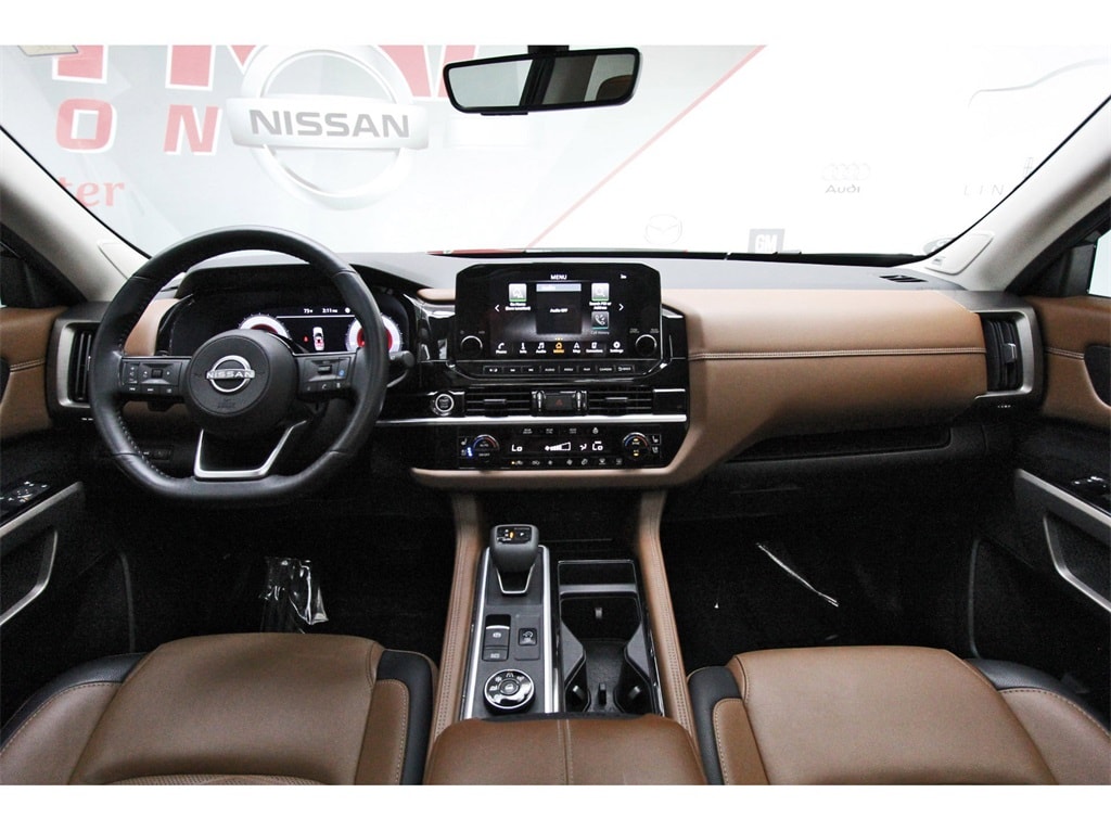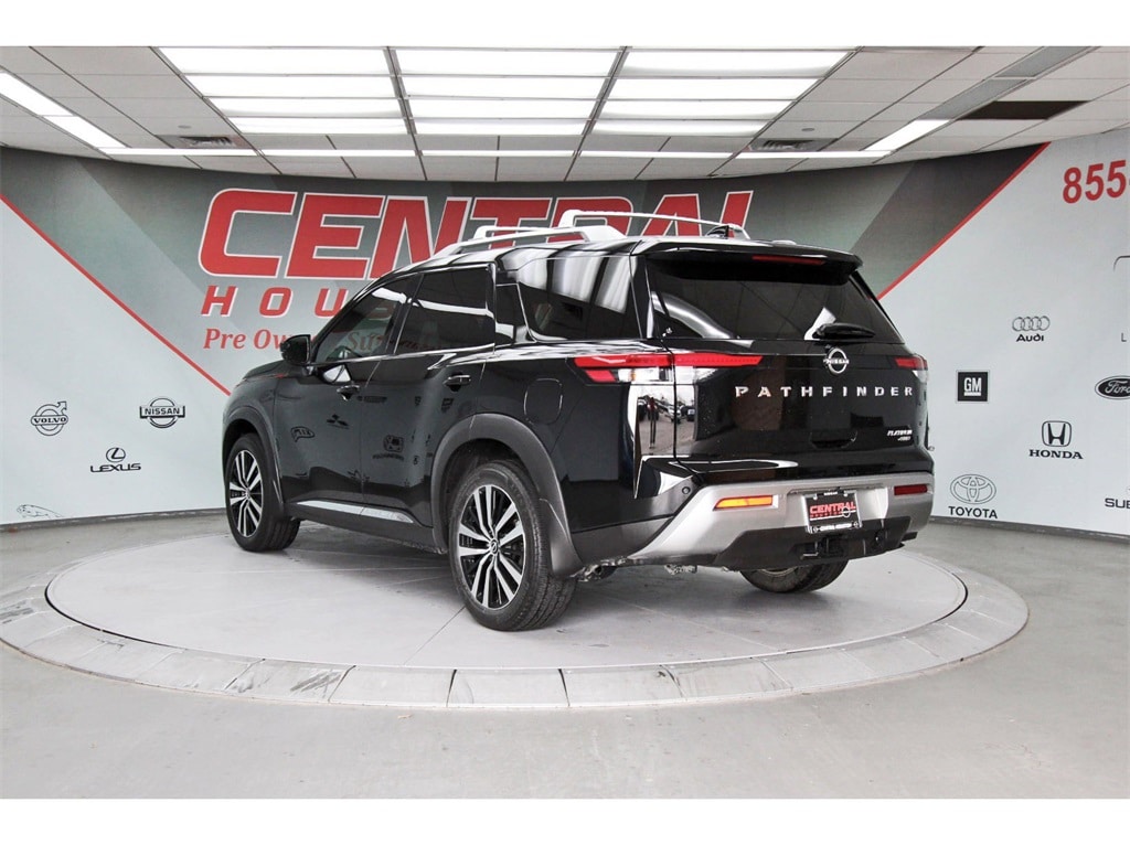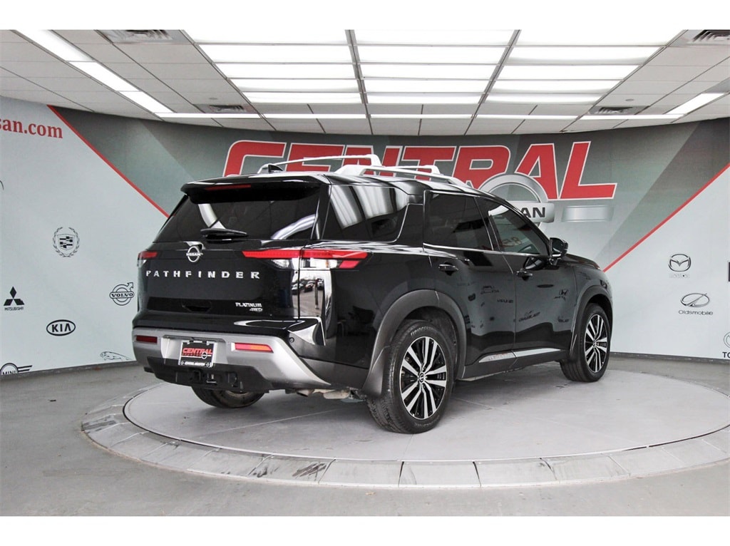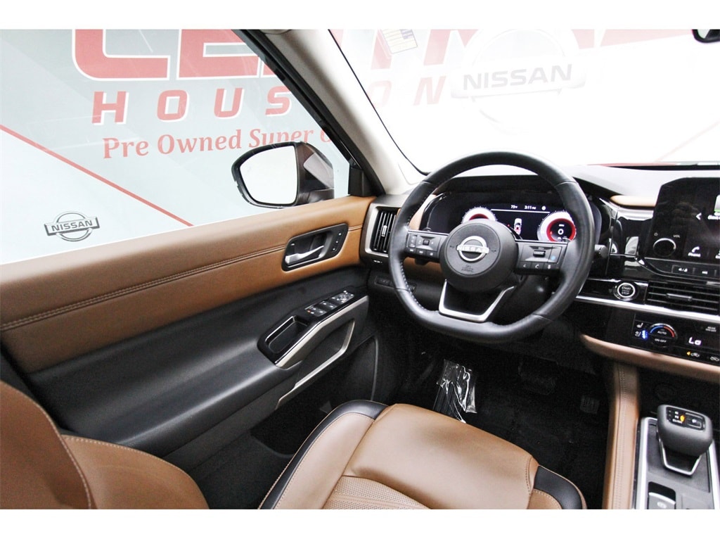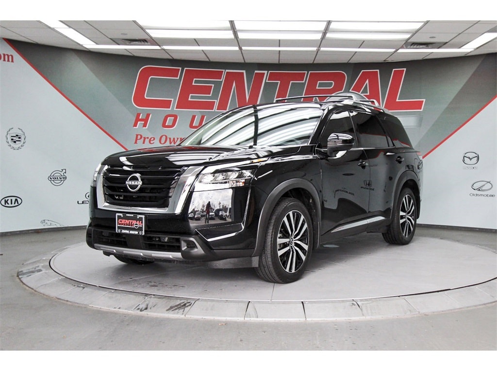 Central Houston Nissan is proud to present you with another True Market Priced Pre-Owned Vehicle. This 2024 Nissan Pathfinder Platinum is loaded with the following Factory Options: 4WD Cargo Package (Cargo Area Protector, Cargo Net, and First Aid Kit), Platinum Captain Chairs Package (2nd-Row Captain Chairs and 2nd-Row Rear Headrest), 4WD, 13 Speakers, 3rd row seats: bench, 4-Wheel Disc Brakes, ABS brakes, Air Conditioning, Alloy wheels, AM/FM radio: SiriusXM, Auto High-beam Headlights, Auto tilt-away steering wheel, Auto-dimming Rear-View mirror, Automatic temperature control, Axle Ratio: 4.334, Black Splash Guards (Set of 4), Bodyside moldings, Bose Premium Audio System, Brake assist, Bumpers: body-color, Captain's Chairs Carpeted Floor Mats (Set of 4), Cross Bars, Delay-off headlights, Driver door bin, Driver vanity mirror, Dual front impact airbags, Dual front side impact airbags, Electronic Stability Control, Emergency communication system, Exterior Parking Camera Rear, Four wheel independent suspension, Front anti-roll bar, Front Bucket Seats, Front Center Armrest, Front dual zone A/C, Front reading lights, Fully automatic headlights, Garage door transmitter: HomeLink, Heads-Up Display, Heated & Cooled Front Bucket Seats, Heated door mirrors, Heated front seats, Heated rear seats, Heated steering wheel, Illuminated entry, Knee airbag, Leather steering wheel, Low tire pressure warning, Memory seat, Navigation system: NissanConnect with Navigation and Services, Nissan USB Charging Cable Set, NissanConnect featuring Apple CarPlay and Android Auto, NissanConnect w/Navigation & Services, Occupant sensing airbag, Outside temperature display, Overhead airbag, Overhead console, Panic alarm, Passenger door bin, Passenger vanity mirror, Power door mirrors, Power driver seat, Power Liftgate, Power moonroof, Power passenger seat, Power steering, Power windows, Radio data system, Radio: AM/FM Audio System, Rain sensing wipers, Rear air conditioning, Rear anti-roll bar, Rear reading lights, Rear seat center armrest, Rear side impact airbag, Rear window defroster, Rear window wiper, Reclining 3rd row seat, Remote keyless entry, Security system, Semi-Aniline Leather-Appointed Seating Surfaces, Speed control, Speed-sensing steering, Speed-Sensitive Wipers, Split folding rear seat, Spoiler, Steering wheel memory, Steering wheel mounted audio controls, Tachometer, Telescoping steering wheel, Tilt steering wheel, Traction control, Trip computer, Turn signal indicator mirrors, Variably intermittent wipers, Ventilated front seats, and Wheels: 20" x 8J Machined Alloy!!