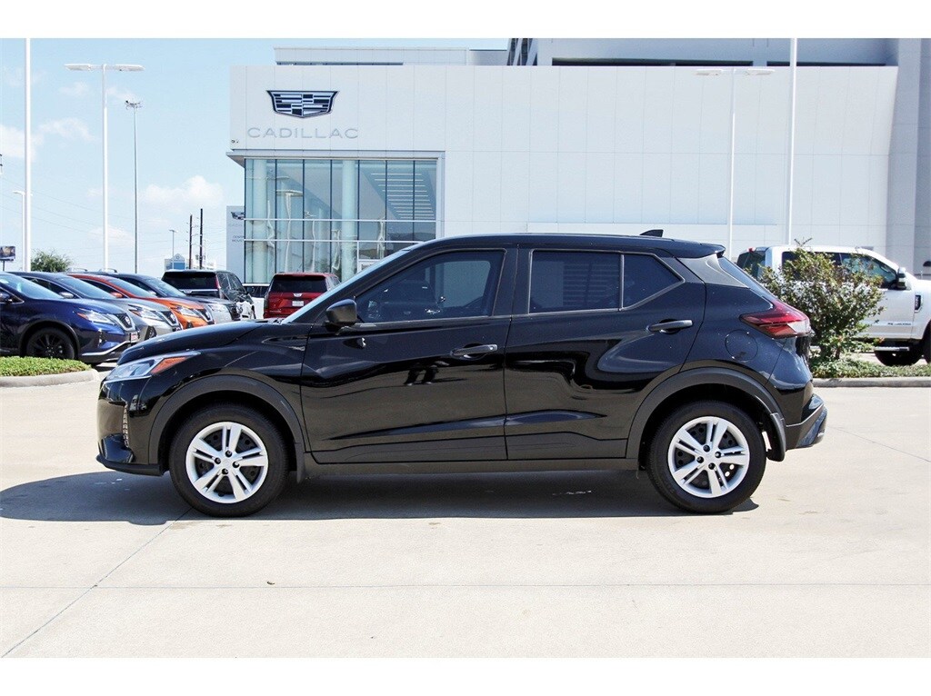 Central Houston Nissan is proud to present you with another True Market Priced Pre-Owned Vehicle. This 2025 Nissan Kicks Play S is loaded with the following Factory Options: 16" Steel Wheels w/Full Covers, 6 Speakers, ABS brakes, Air Conditioning, AM/FM radio, Apple CarPlay/Android Auto, Auto High-beam Headlights, Blind Spot Warning, Brake assist, Bumpers: body-color, Cloth Seat Trim w/Single Stitch, Driver door bin, Driver vanity mirror, Driver's Seat Mounted Armrest, Dual front impact airbags, Dual front side impact airbags, Electronic Stability Control, Front anti-roll bar, Front Bucket Seats, Front reading lights, Front wheel independent suspension, Fully automatic headlights, Illuminated entry, Knee airbag, Low tire pressure warning, Occupant sensing airbag, Outside temperature display, Overhead airbag, Panic alarm, Passenger door bin, Passenger vanity mirror, Power door mirrors, Power steering, Power windows, Radio data system, Radio: AM/FM Audio System, Rear Parking Sensors, Rear reading lights, Rear side impact airbag, Rear window defroster, Rear window wiper, Remote keyless entry, Speed control, Split folding rear seat, Sport steering wheel, Steering wheel mounted audio controls, Tachometer, Telescoping steering wheel, Tilt steering wheel, Traction control, Trip computer, and Variably intermittent wipers!!