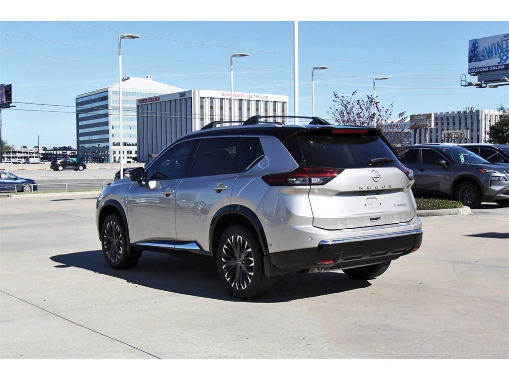 Central Houston Nissan is proud to present you with another True Market Priced Pre-Owned Vehicle. This 2025 Nissan Rogue Platinum is loaded with the following Factory Options: 10 Speakers, 4-Wheel Disc Brakes, ABS brakes, Air Conditioning, Alloy wheels, AM/FM radio: SiriusXM with 360L, Android Auto and Apple CarPlay, Auto High-beam Headlights, Auto-dimming Rear-View mirror, Automatic temperature control, Brake assist, Bumpers: body-color, Chrome Rear Bumper Protector, Delay-off headlights, Driver door bin, Driver vanity mirror, Dual front impact airbags, Dual front side impact airbags, Electronic Stability Control, Emergency communication system: NissanConnect Services, External Ground Lighting, First Aid Kit, Floor Mats with 2-Piece Cargo Area Protector, Four wheel independent suspension, Front anti-roll bar, Front Bucket Seats, Front Center Armrest, Front dual zone A/C, Front reading lights, Fully automatic headlights, Garage door transmitter: myQ Connected Garage, Heated door mirrors, Heated Front Bucket Seats with 8-Way Power Driver Seat and 4-Way Power Passenger Seat, Heated front seats, Heated steering wheel, Illuminated entry, Knee airbag, Low tire pressure warning, Memory seat, Navigation system: NissanConnect with Navigation and Services, Occupant sensing airbag, Outside temperature display, Overhead airbag, Overhead console, Panic alarm, Passenger door bin, Passenger vanity mirror, Power door mirrors, Power driver seat, Power Liftgate, Power moonroof, Power passenger seat, Power steering, Power windows, Quilted and Perforated Semi-Aniline Leather-Appointed Seat Trim, Radio data system, Radio: NissanConnect with Navigation and 10 Speaker BOSE Premium Audio System, Rear anti-roll bar, Rear reading lights, Rear seat center armrest, Rear side impact airbag, Rear window defroster, Rear window wiper, Remote keyless entry, Roof Rail Cross Bars, Security system, Speed control, Speed-sensing steering, Speed-Sensitive Wipers, Split folding rear seat, Spoiler, Steering wheel mounted audio controls, Tachometer, Telescoping steering wheel, Tilt steering wheel, Traction control, Trip computer, Turn signal indicator mirrors, USB Charging Cable Set - Nissan, Variably intermittent wipers, and Wheels: 19" Unique Dark Painted Machine Finished Aluminum Alloy!!