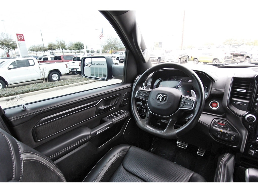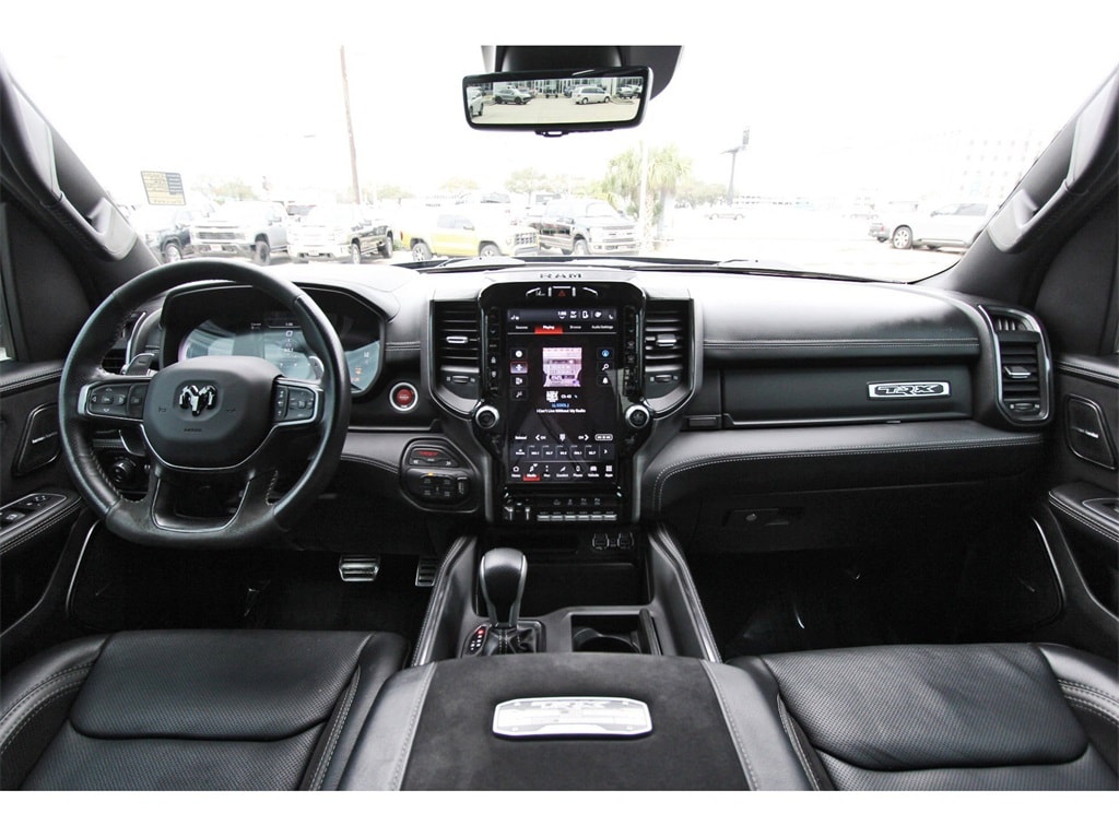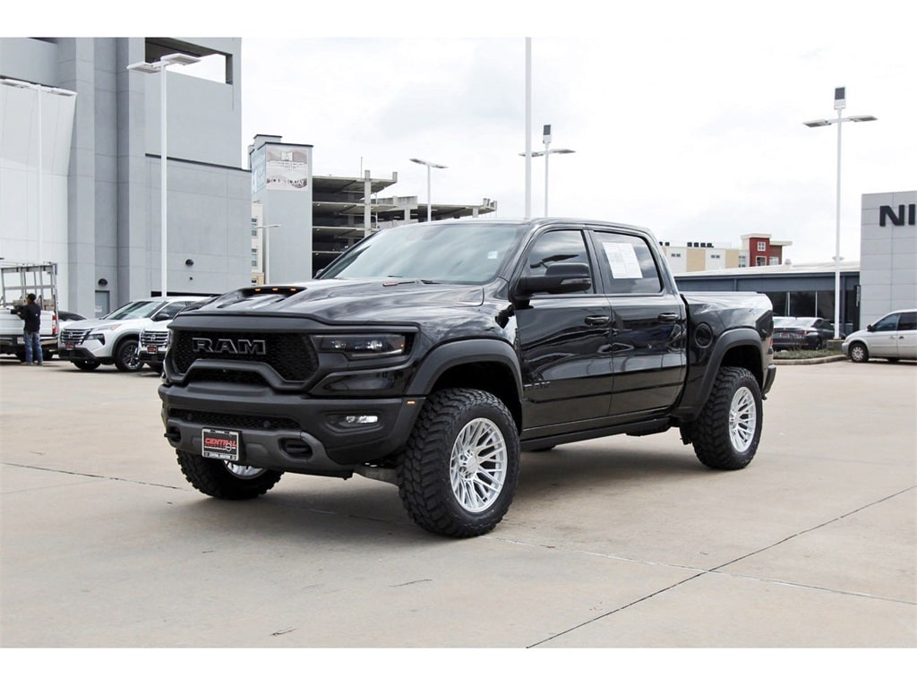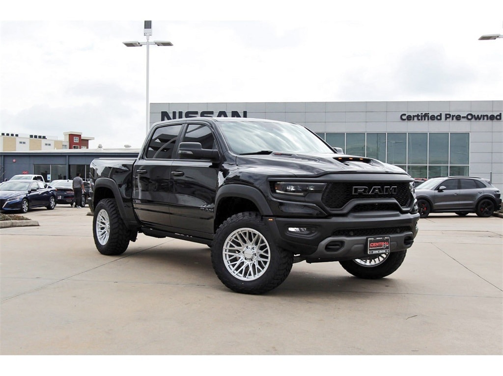 Central Houston Nissan is proud to present you with another True Market Priced Pre-Owned Vehicle. This 2023 Ram 1500 TRX is loaded with the following Factory Options: Advanced Safety Group (Adaptive Cruise Control w/Stop & Go, Lane Keep Assist, Pedestrian Emergency Braking, and Tailgate Ajar Warning Lamp), Bed Utility Group (MOPAR 4 Adjustable Cargo Tie-Down Hooks, MOPAR Deployable Bed Step, and MOPAR Spray In Bedliner), Quick Order Package 29Y, Trailer Tow Group (Trailer Light Check and Trailer Tire Pressure Monitoring System), TRX Level 2 Equipment Group (#2 Seat Foam Cushion, 2-Door Passive Entry, Front Door Locks, 4 Way Front Headrests, Accent Color Door Handles, Blind Spot & Cross Path Detection, Bucket Seats, Center Console Parts Module, Digital Rearview Mirror, Driver Seat Memory, Driver/Passenger Wrapped Assist Handles, Exterior Mirrors w/Memory, Front Door Accent Lighting, Front Seat Back Map Pockets, Full Length Premium Upgraded Floor Console, Heads-Up Display, Heated Front Seats, Heated Second Row Seats, Heated Steering Wheel, IP LED Ambient Light Pipe, Leather Trimmed Bucket Seats, Leather/Suede Flat-Bottom Steering Wheel, LED CHMSL Lamp, Luxury Front Door Trim Panel, MOPAR Bright Pedal Kit, ParkSense Front/Rear Park Assist w/Stop, Pick-Up Box Lighting, Power 4-Way Driver Lumbar Adjust, Power 4-Way Passenger Lumbar Adjust, Power 8-Way Driver & Passenger Seats, Power Adjustable Pedals w/Memory, Premium Wrapped IP Bezel, Radio/Driver Seat/Mirrors/Pedals Memory, Rain Sensitive Windshield Wipers, Rear 60/40 Folding Seat, Rear 60/40 Folding Split Recline Seat, Rear Door Accent Lighting, Rear Underseat Compartment Storage, Rear Window Defroster, Remote Tailgate Release, Sun Visors w/Illuminated Vanity Mirrors, Surround View Camera System, Trailer Brake Control, Universal Garage Door Opener, Ventilated Front Seats, Ventilated Rear Seats, and Wireless Charging Pad), 10 Speakers, 3.55 Rear Axle Ratio, 4-Wheel Disc Brakes, ABS brakes, Adaptive suspension, Air Conditioning, Alloy wheels, AM/FM radio: SiriusXM with 360L, Apple CarPlay/Android Auto, Auto High-beam Headlights, Auto-dimming door mirrors, Auto-dimming Rear-View mirror, Automatic temperature control, Black Exterior Mirrors, Brake assist, Cloth/Vinyl Bucket Seats, Compass, Delay-off headlights, Driver door bin, Dual front impact airbags, Dual front side impact airbags, Electronic Stability Control, Exterior Mirrors Courtesy Lamps, Exterior Mirrors w/Heating Element, Exterior Mirrors w/Supplemental Signals, Front anti-roll bar, Front Bucket Seats, Front Center Armrest w/Storage, Front dual zone A/C, Front fog lights, Front reading lights, Front wheel independent suspension, Fully automatic headlights, harman/kardon 19 Speaker Premium Sound (DISC), Heated door mirrors, Illuminated entry, Leather Shift Knob, Leather steering wheel, Low tire pressure warning, Navigation System, Occupant sensing airbag, Outside temperature display, Overhead airbag, Overhead console, Panic alarm, ParkView Rear Back-Up Camera, Passenger door bin, Passenger vanity mirror, Power door mirrors, Power driver seat, Power steering, Power windows, Power-Folding Mirrors, Radio data system, Radio: Uconnect 5 Nav w/12.0" Display, Rear seat center armrest, Rear step bumper, Remote keyless entry, Security system, Speed control, Split folding rear seat, Sport steering wheel, Steering wheel mounted audio controls, Tachometer, Telescoping steering wheel, Tilt steering wheel, Traction control, Trip computer, Turn signal indicator mirrors, Variably intermittent wipers, Voltmeter, and Wheels: 18" x 9" Black Paint/Polish Aluminum!!